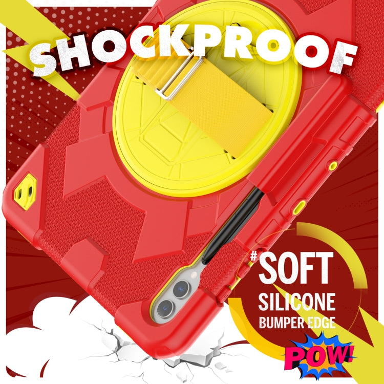 For Samsung Galaxy Tab S10+ / S9+ / S9 FE+ Spider Hand Grip Turntable Stand Tablet Case(Yellow Red)