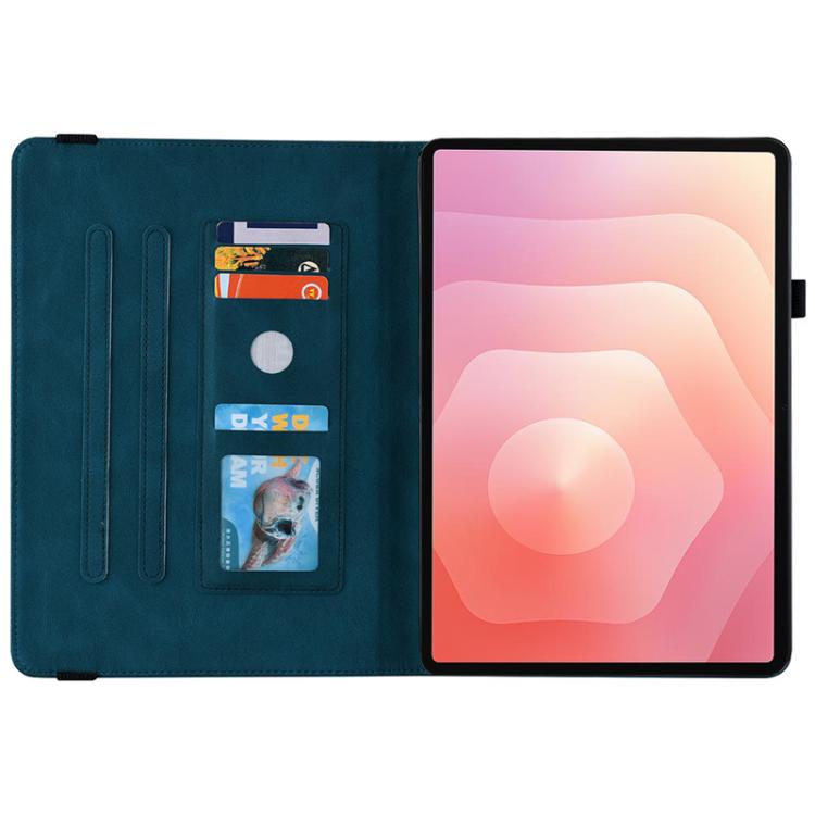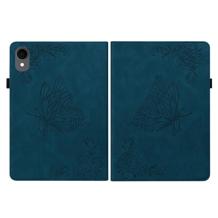 For Samsung Galaxy Tab S11 Butterfly Flower Embossed Leather Tablet Case(Blue)