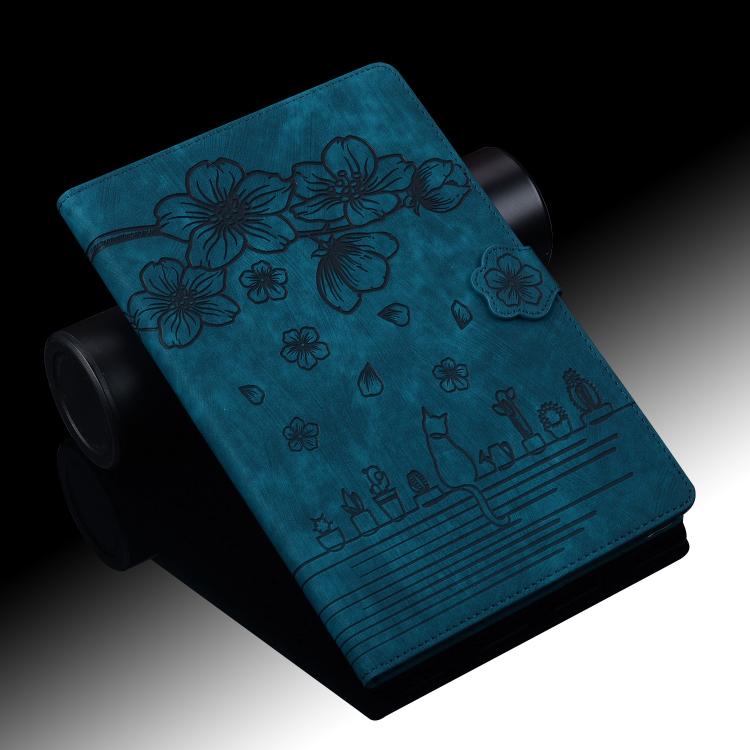 For Samsung Galaxy Tab S11 Cartoon Sakura Cat Embossed Smart Leather Tablet Case(Blue)