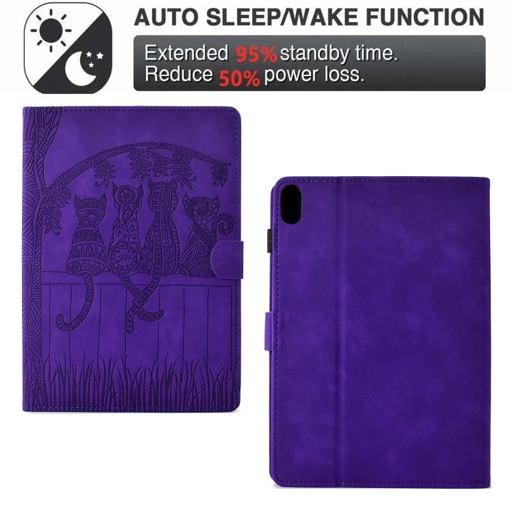 For Samsung Galaxy Tab S11 Cats Embossed Leather Smart Tablet Case(Purple)
