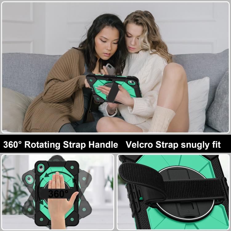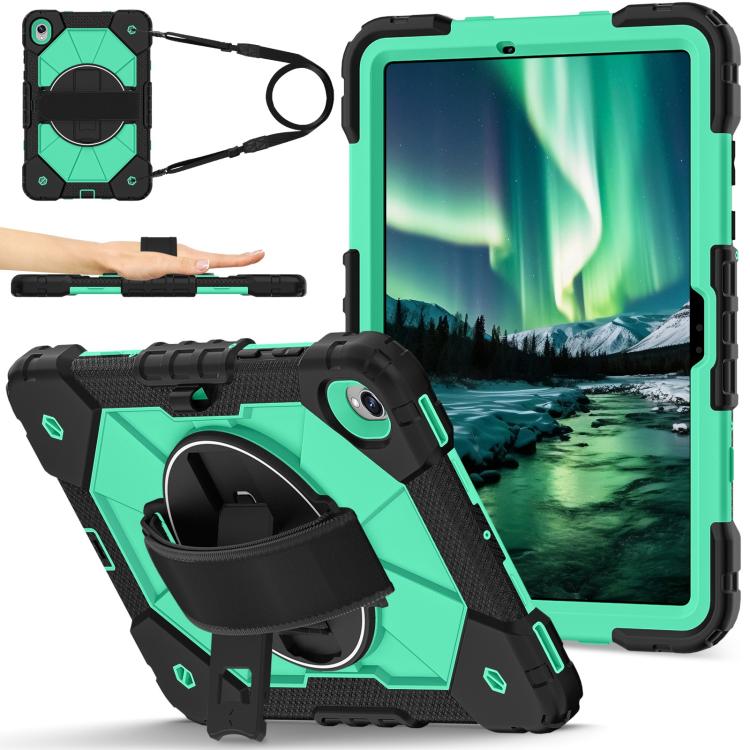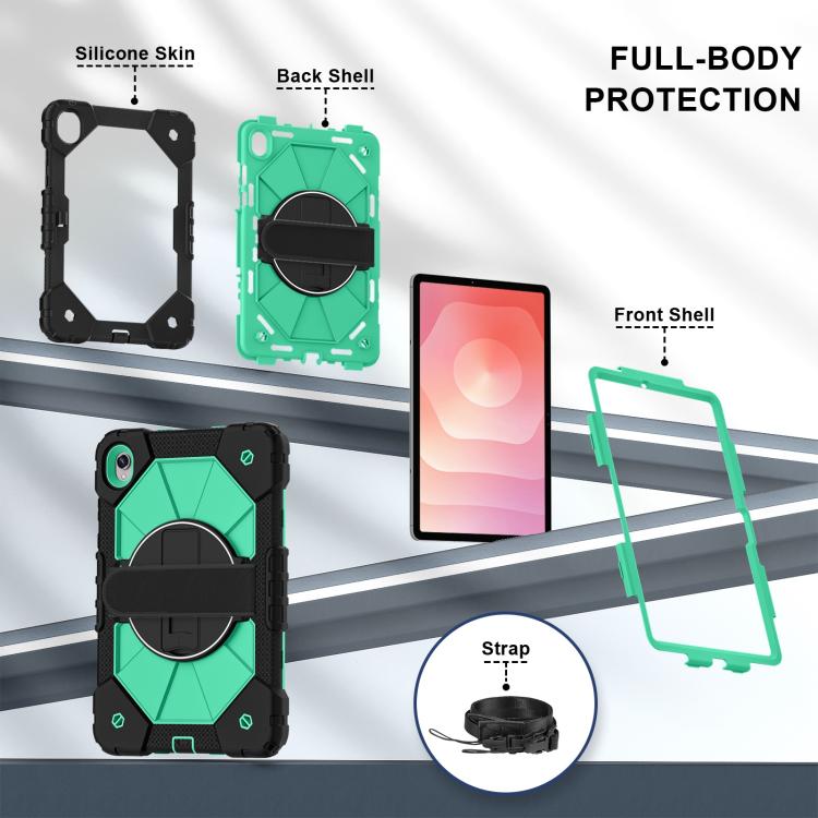 For Samsung Galaxy Tab S11 Contrast Color Robot Silicone Hybrid PC Tablet Case(Black Mint Green)