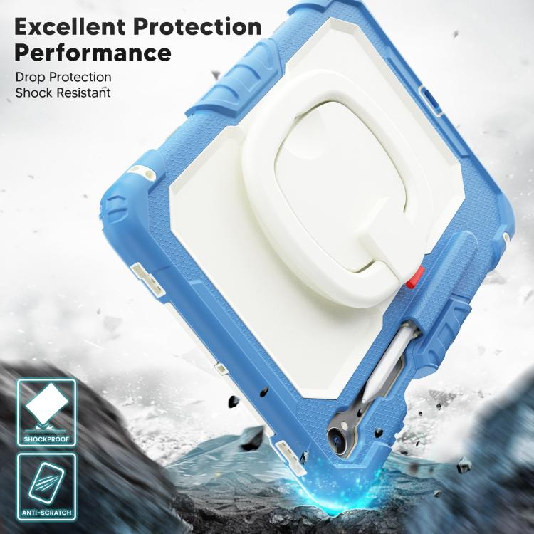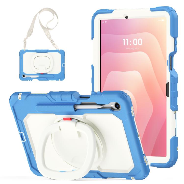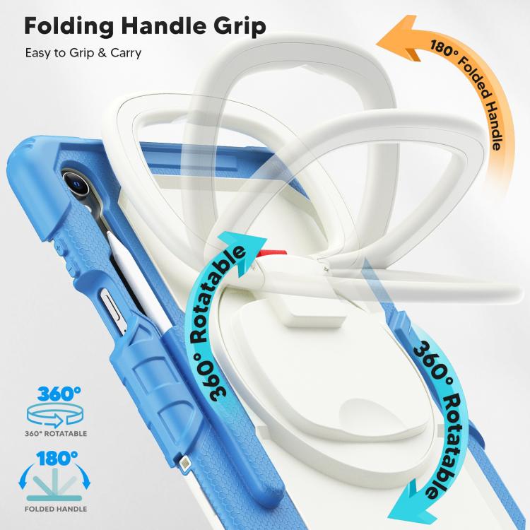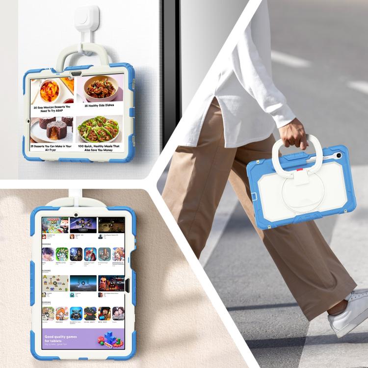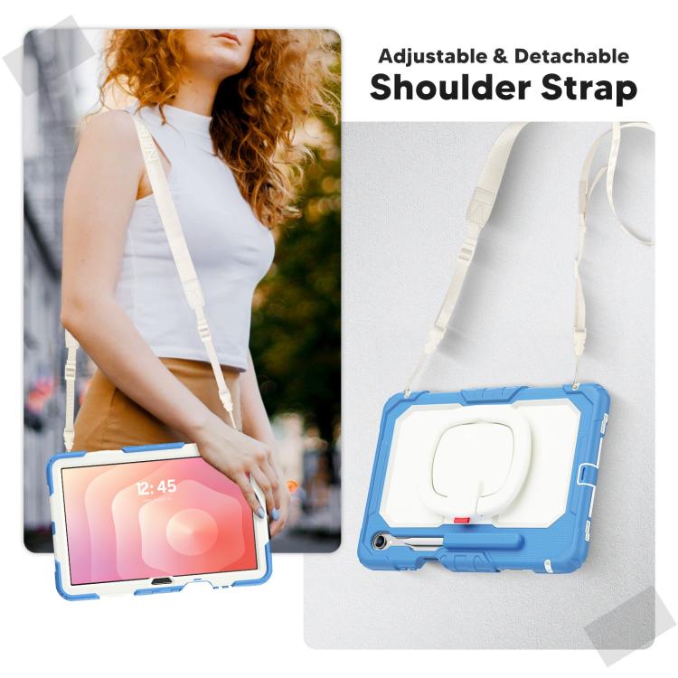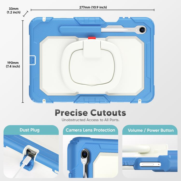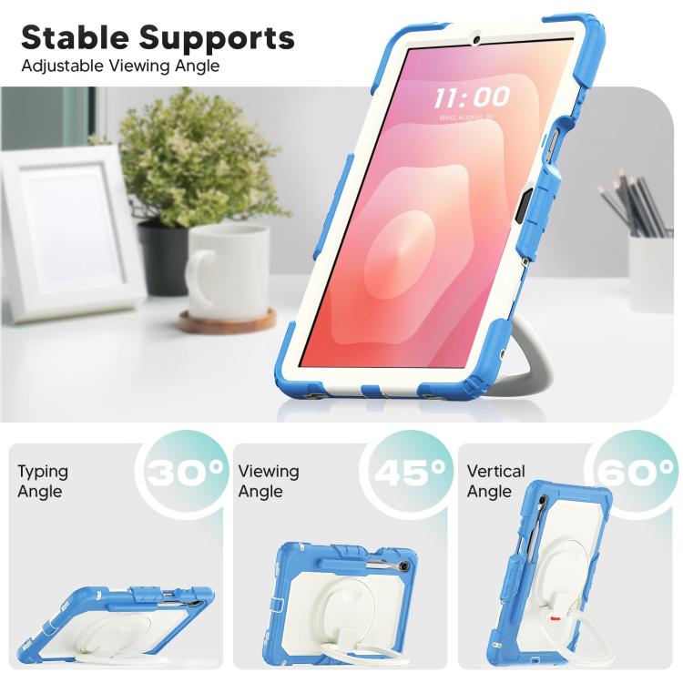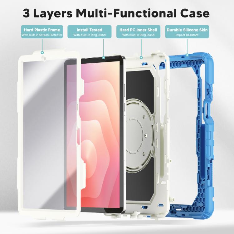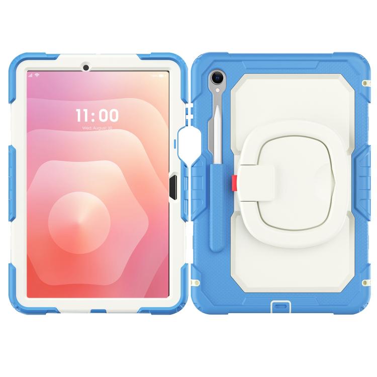 For Samsung Galaxy Tab S11 D Type Silicone Hybrid PC Tablet Case with Handle Holder(Cyan Blue)