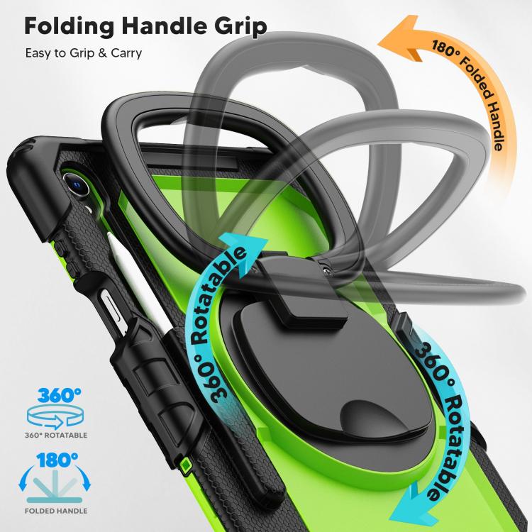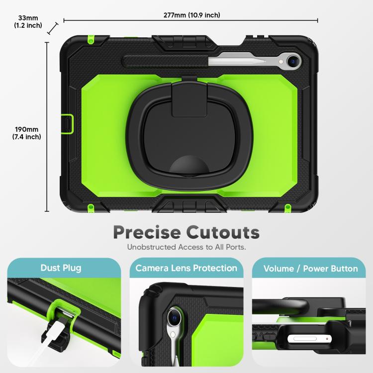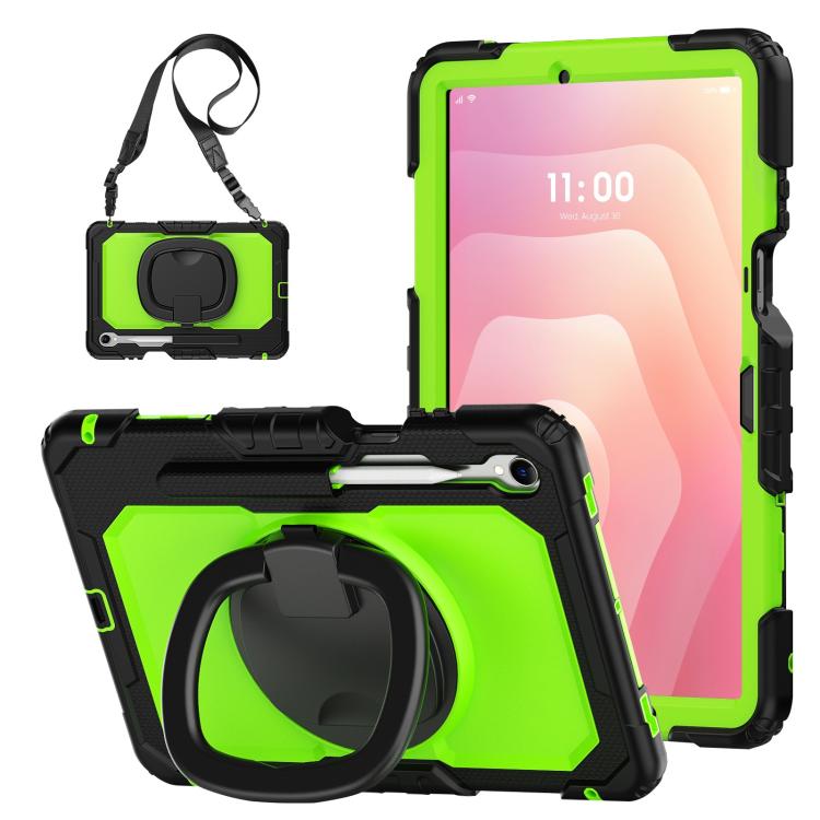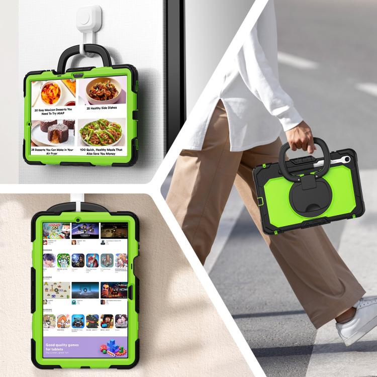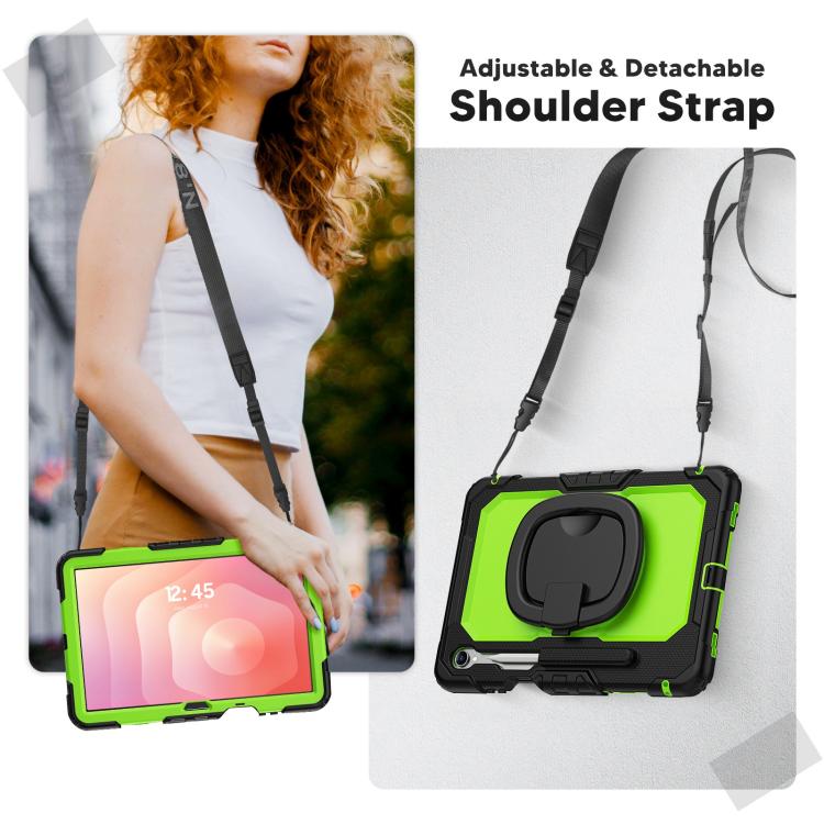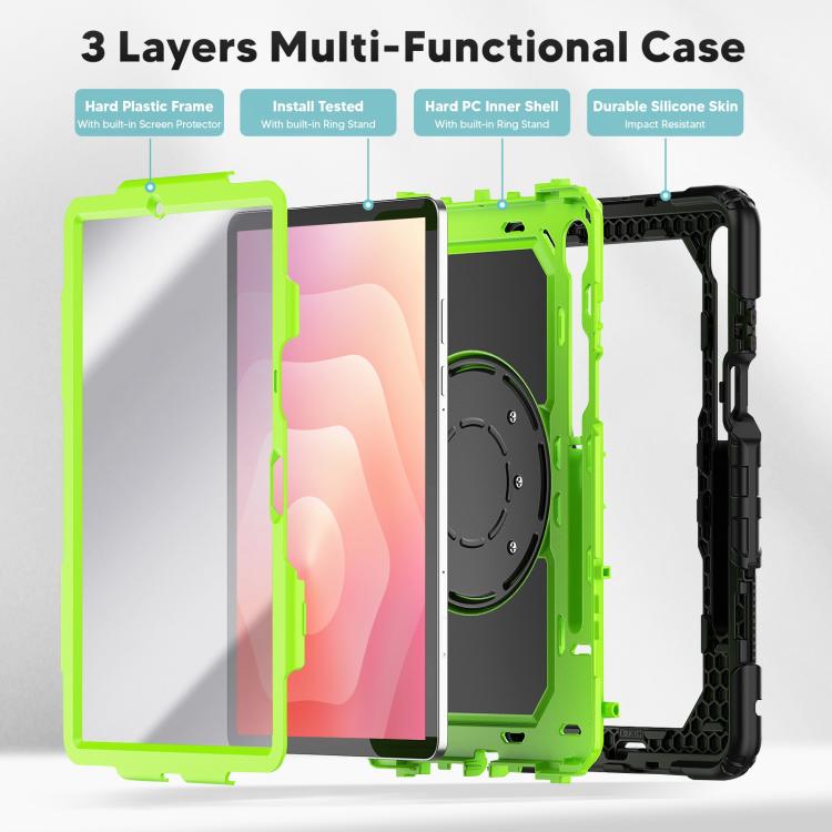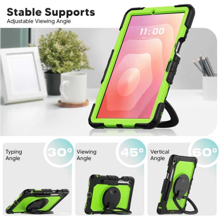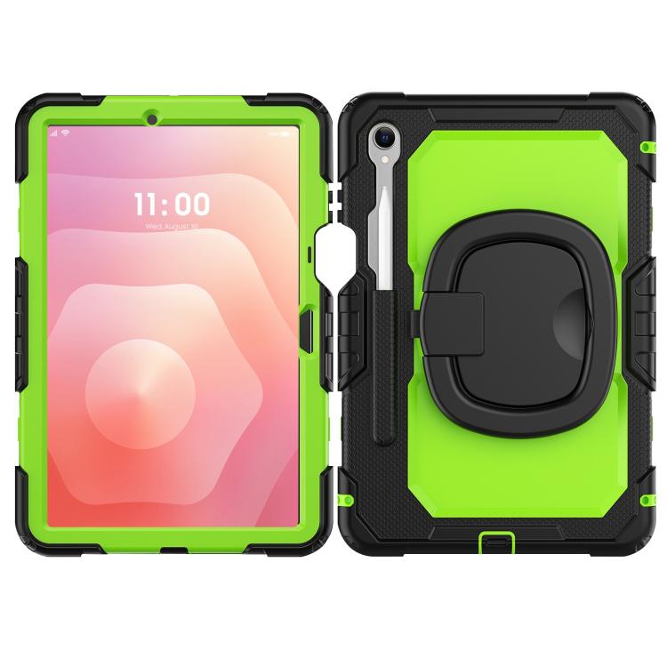For Samsung Galaxy Tab S11 D Type Silicone Hybrid PC Tablet Case with Handle Holder(Yellow Green PC)