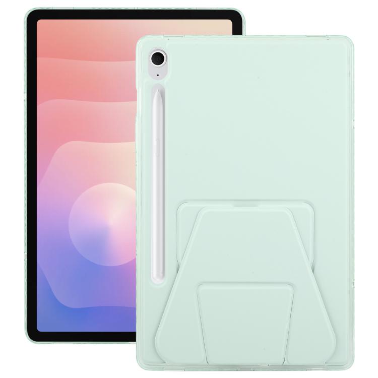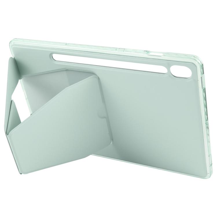 For Samsung Galaxy Tab S11 Folding Magnetic Holder Acrylic Leather Back Tablet Case(Light Green)