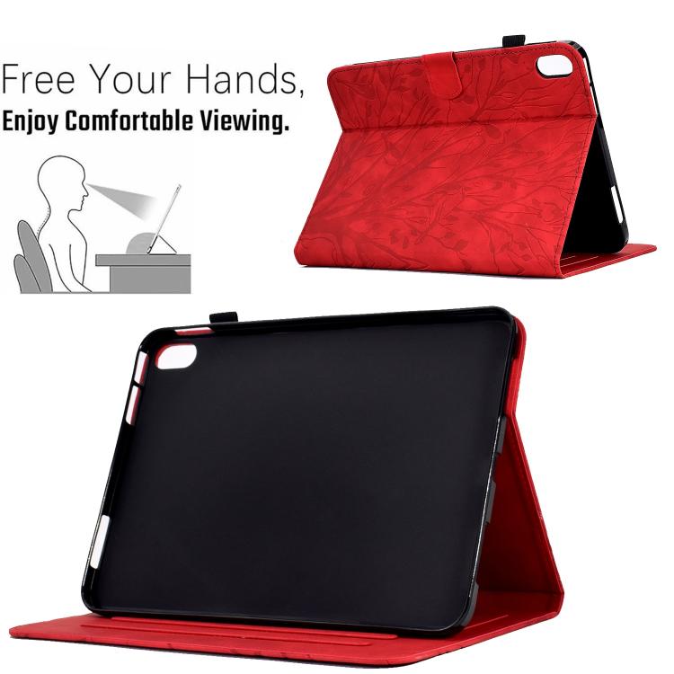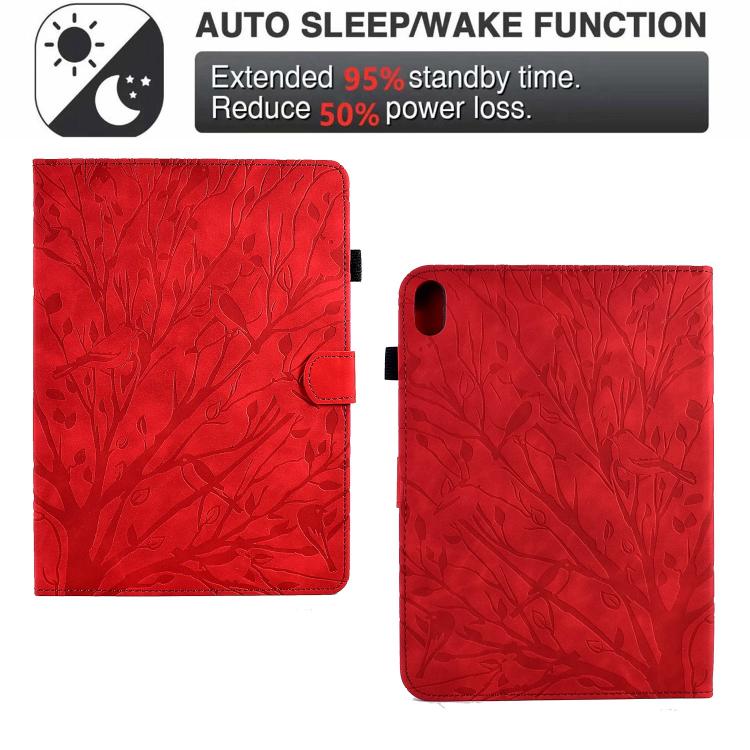 For Samsung Galaxy Tab S11 Fortune Tree Embossed Leather Smart Tablet Case(Red)