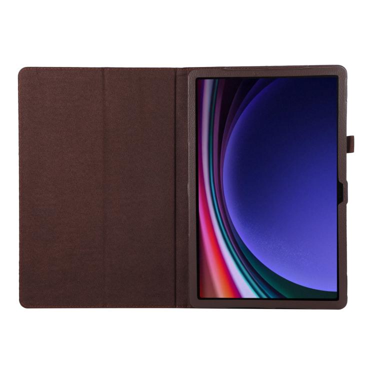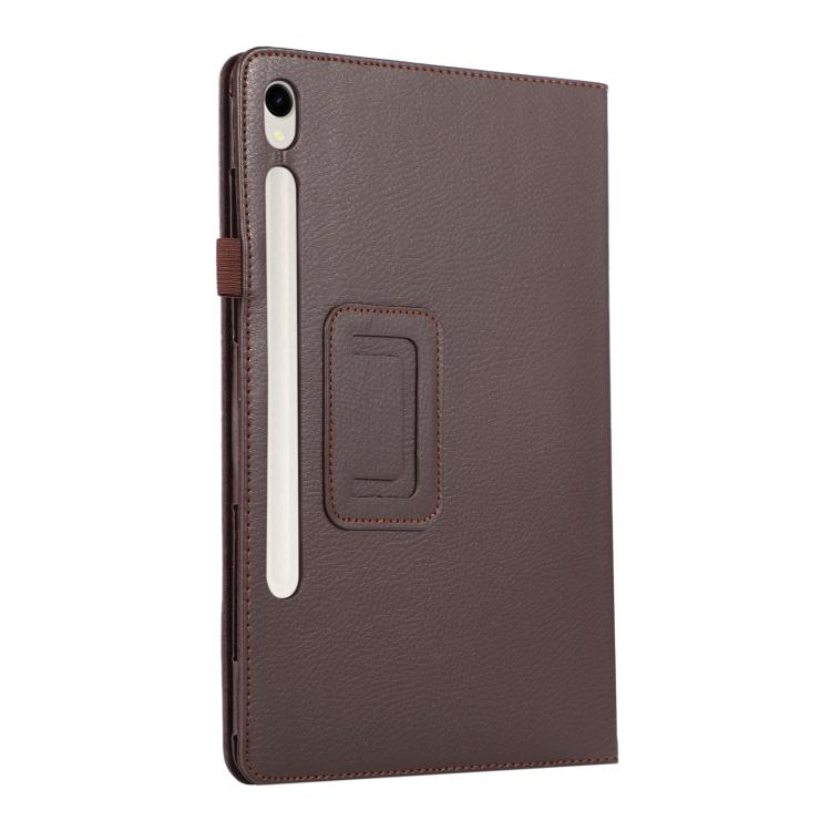 For Samsung Galaxy Tab S11 Litchi Texture Leather Tablet Case with Holder(Brown)