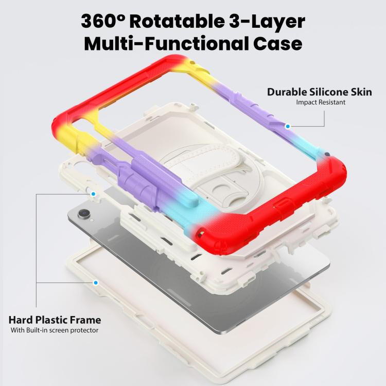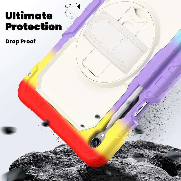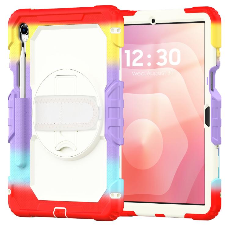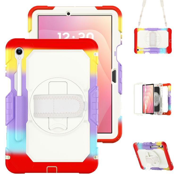 For Samsung Galaxy Tab S11 Lucky Wheel Grip Silicone Hybrid PC Tablet Case with Shoulder Strap(Colorful Red)