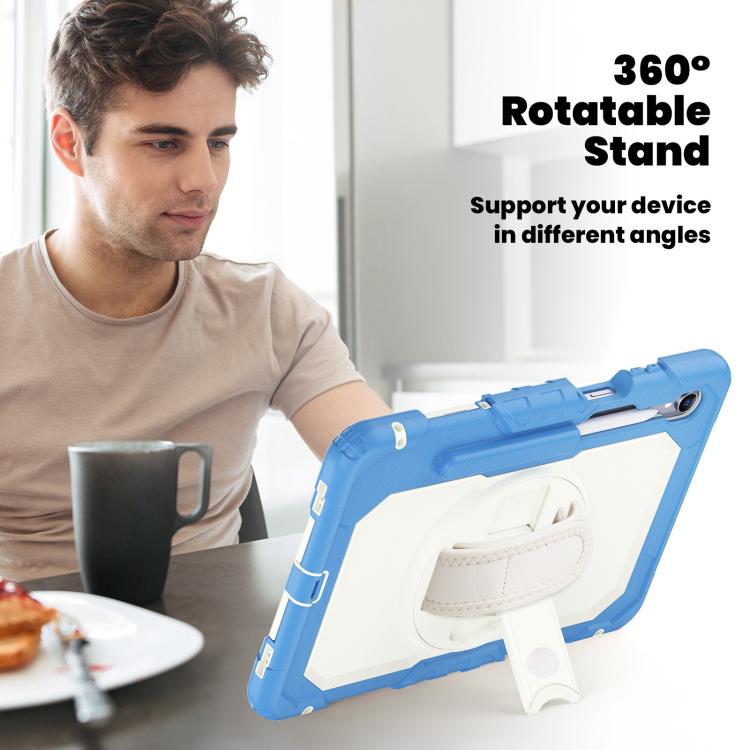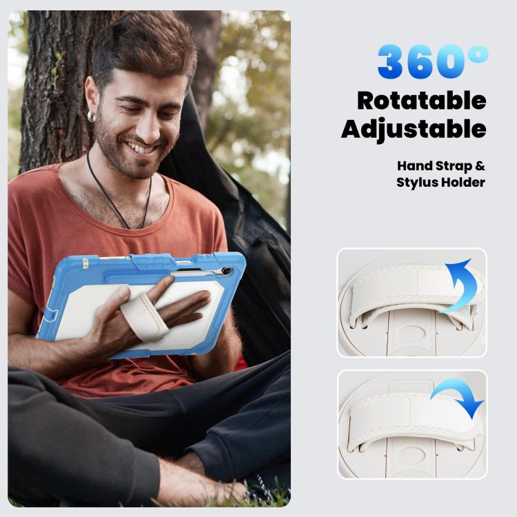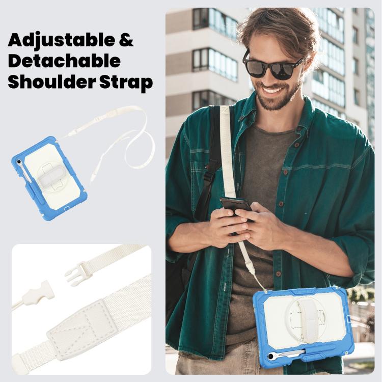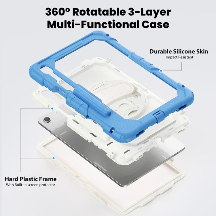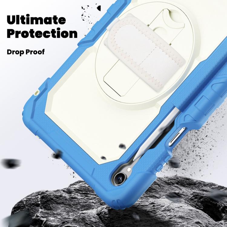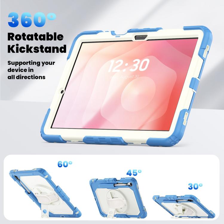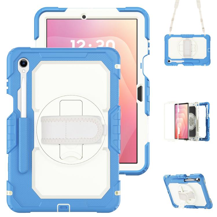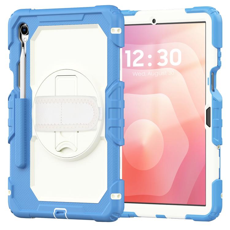 For Samsung Galaxy Tab S11 Lucky Wheel Grip Silicone Hybrid PC Tablet Case with Shoulder Strap(Cyan Blue)