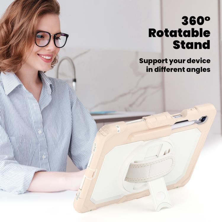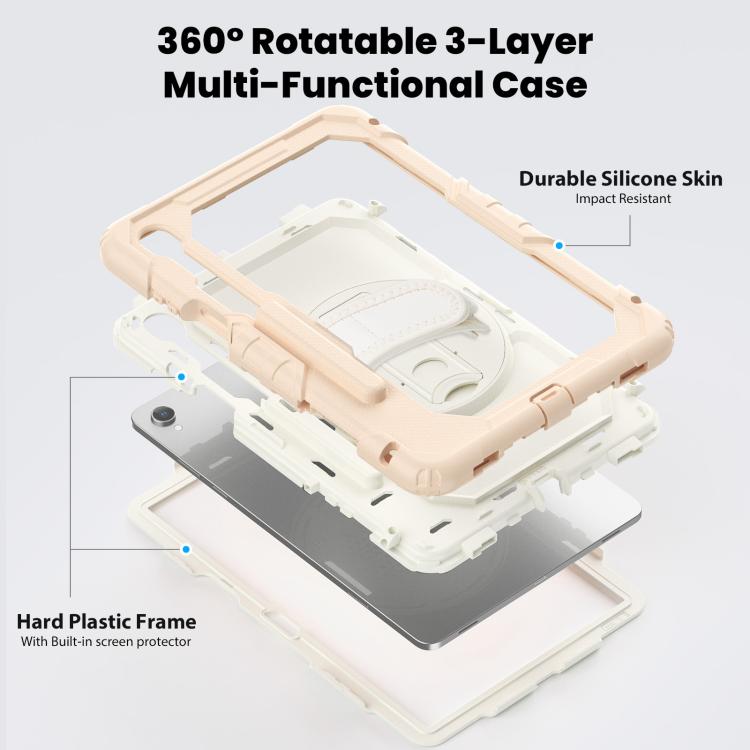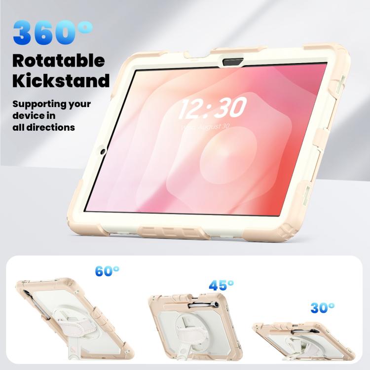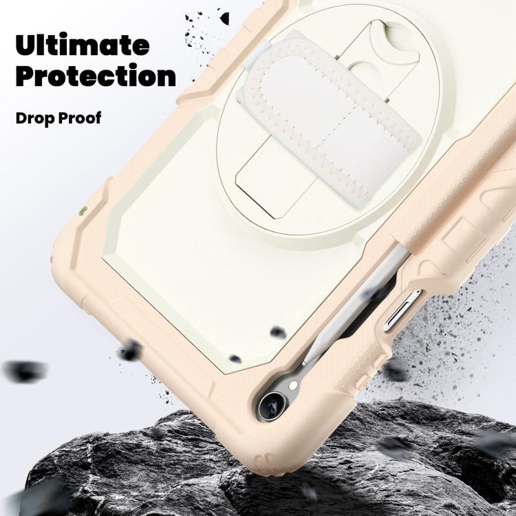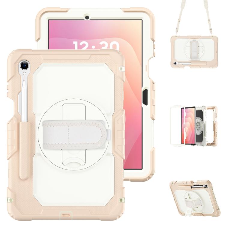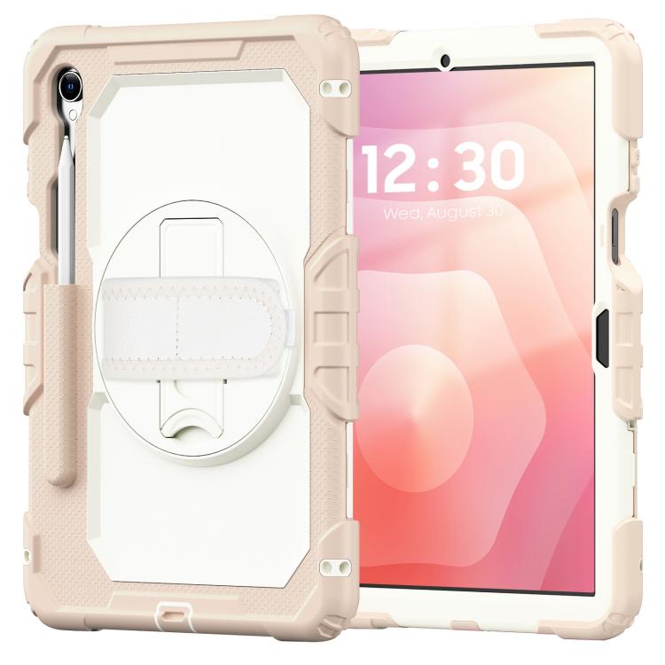 For Samsung Galaxy Tab S11 Lucky Wheel Grip Silicone Hybrid PC Tablet Case with Shoulder Strap(Rose Gold)