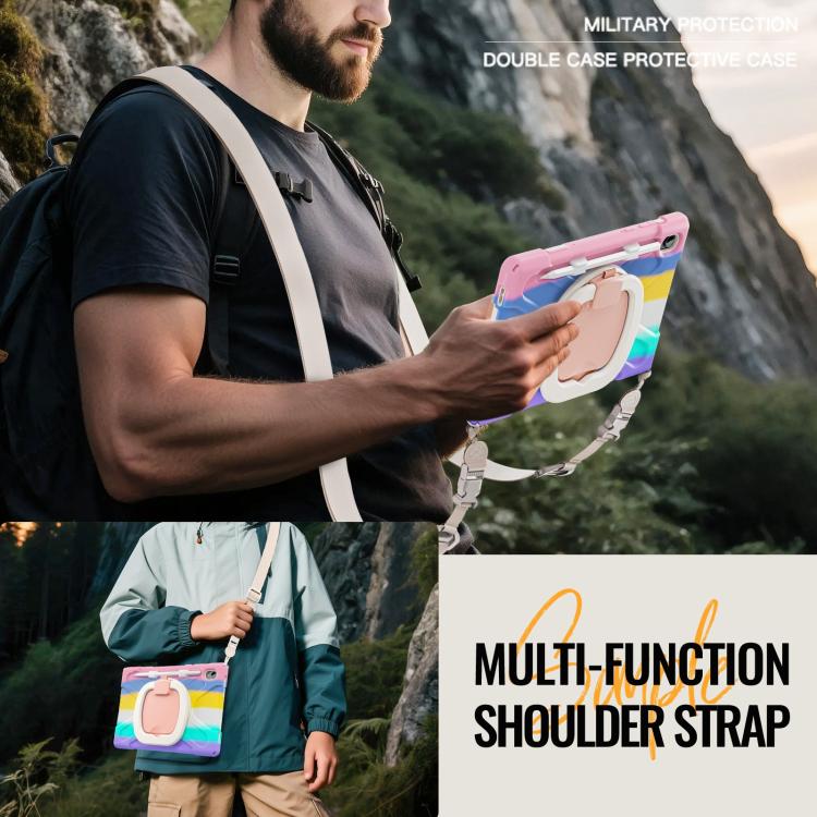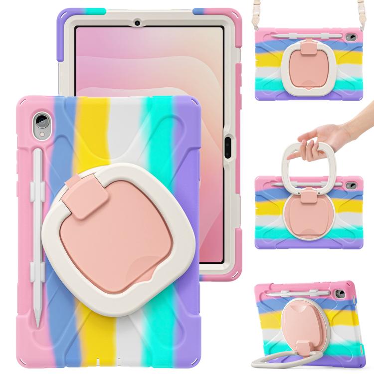 For Samsung Galaxy Tab S11 Silicone Hybrid PC Tablet Case with Holder & Shoulder Strap(Colorful Pink)