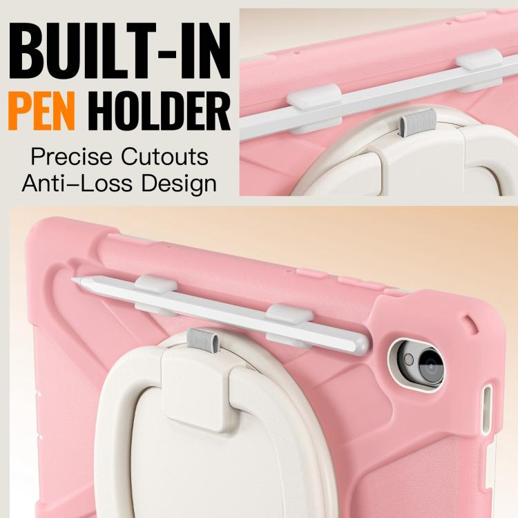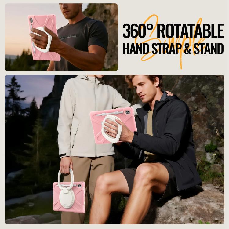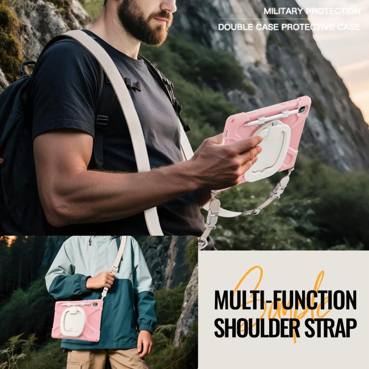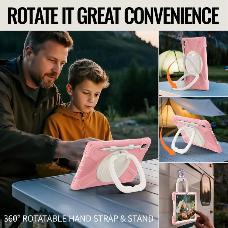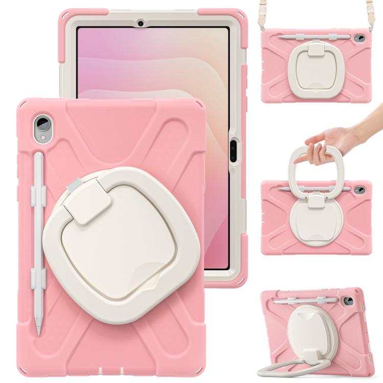 For Samsung Galaxy Tab S11 Silicone Hybrid PC Tablet Case with Holder & Shoulder Strap(Pink)