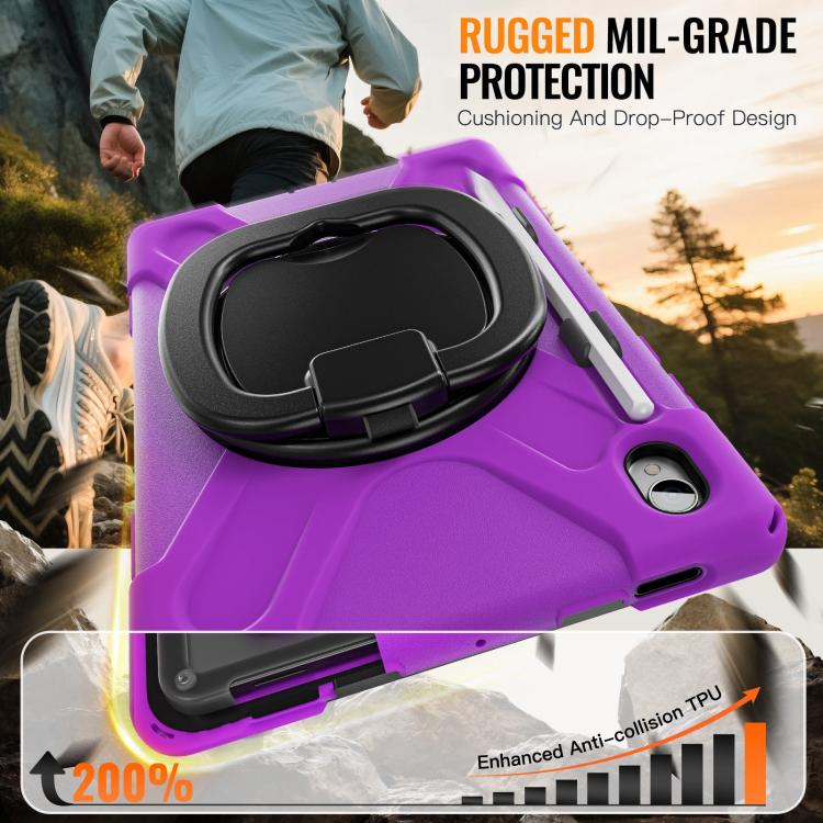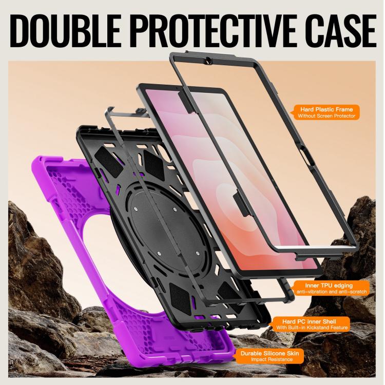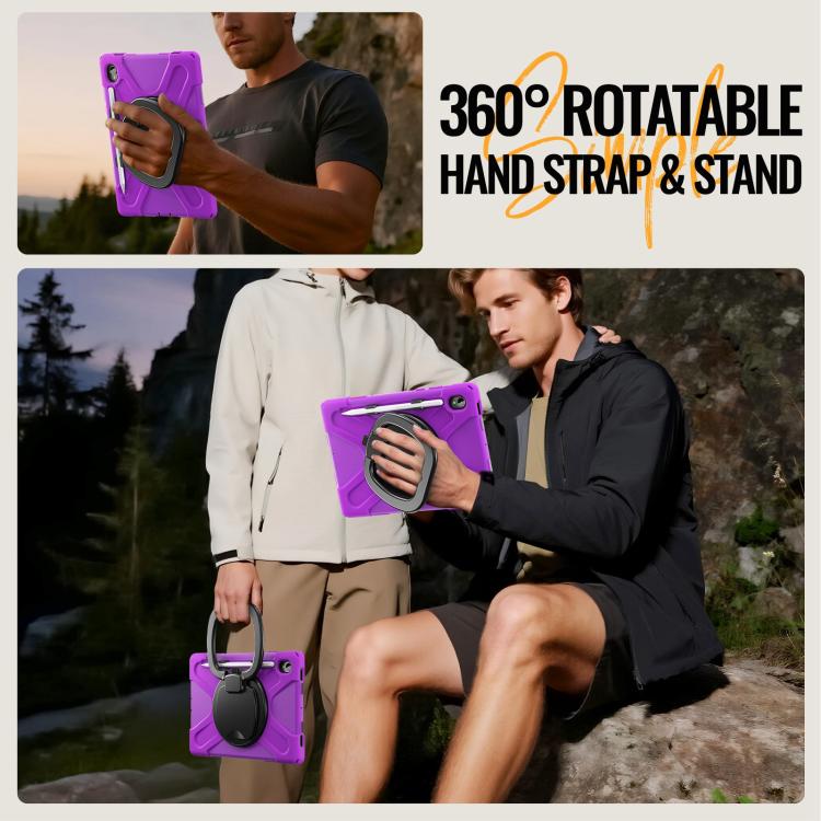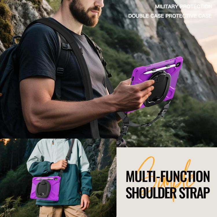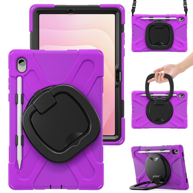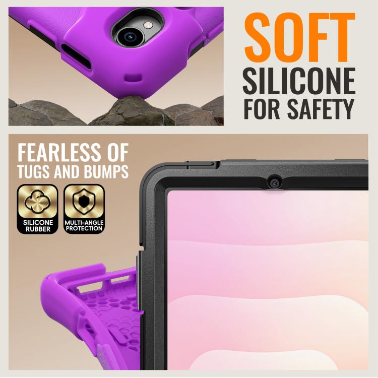 For Samsung Galaxy Tab S11 Silicone Hybrid PC Tablet Case with Holder & Shoulder Strap(Purple)