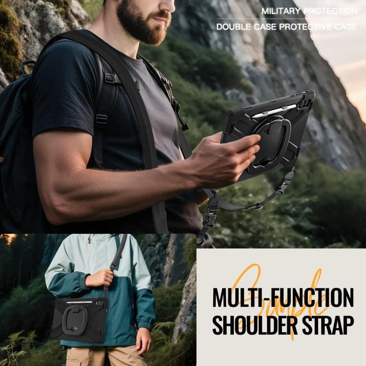 6. Detachable Shoulder Strap: The adjustable hand strap provides easy and comfortable grip, a must-have feature when you are presenting your tablet to others. The detachable and adjustable shoulder strap can help you carry your tablet more safely while hiking, traveling and other outdoor activities. This can also be used to secure your tablet to the car seat.