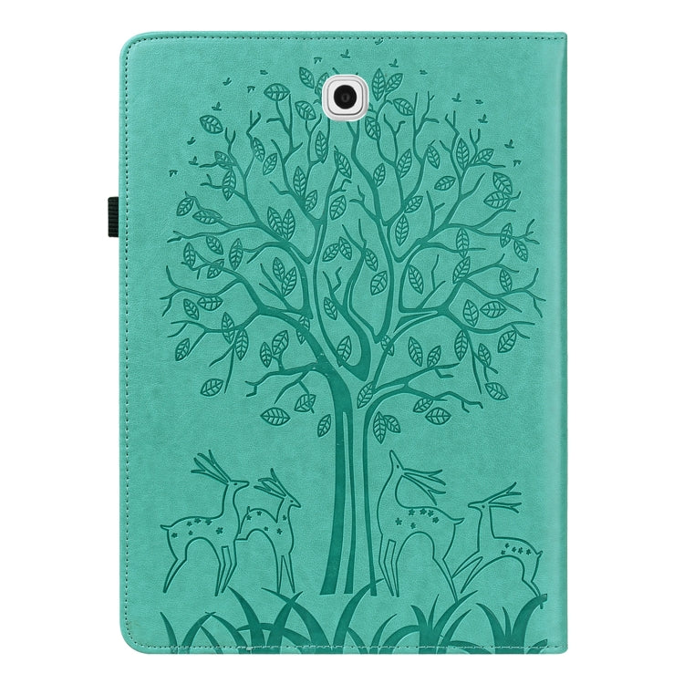 For Samsung Galaxy Tab S2 9.7 Tree & Deer Pattern Pressed Printing Horizontal Flip PU Leather Case with Holder & Card Slots(Green)
