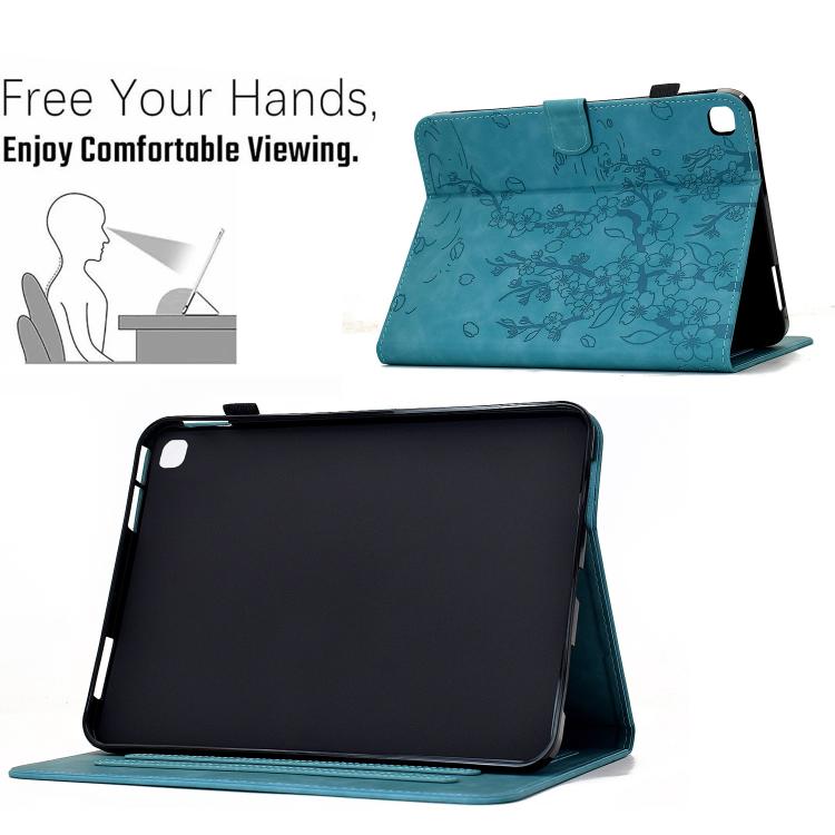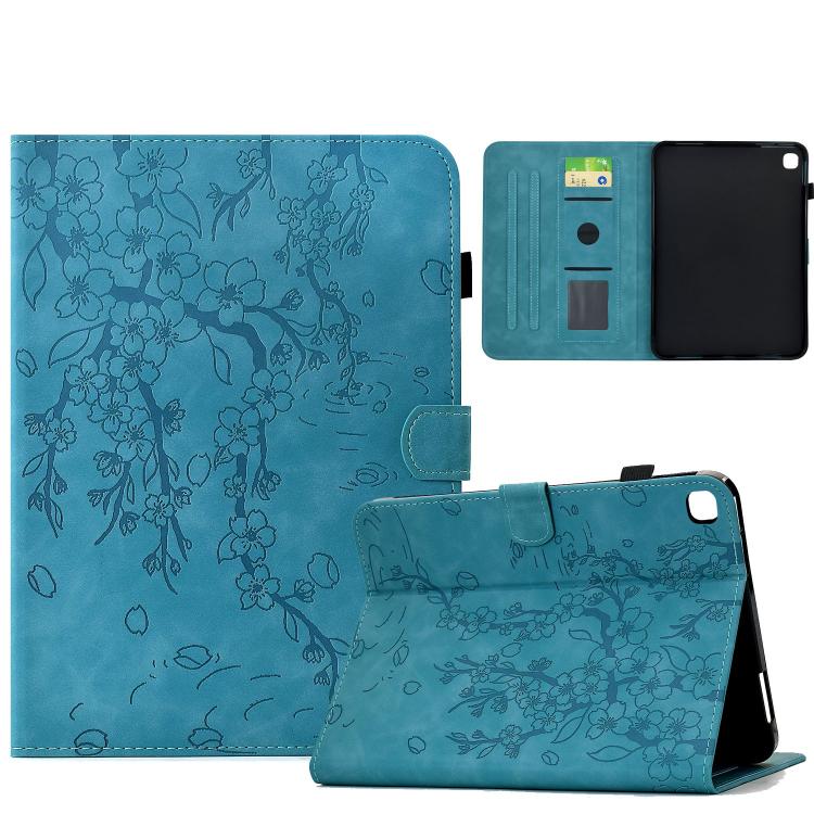 For Samsung Galaxy Tab S5e / T720 Plum Blossom Embossed Smart Leather Tablet Case(Light Blue)