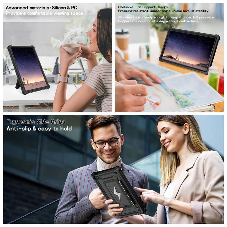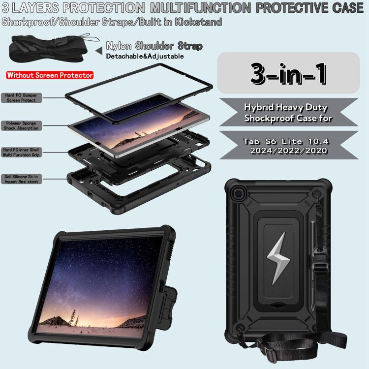 For Samsung Galaxy Tab S6 Lite 2020 / 2024 Armor Bolt Shape Holder Silicone Hybrid PC Tablet Case(Black)