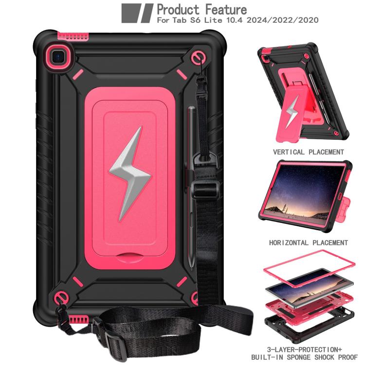 For Samsung Galaxy Tab S6 Lite 2020 / 2024 Armor Bolt Shape Holder Silicone Hybrid PC Tablet Case(Black Rose Red)