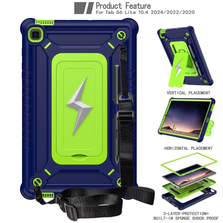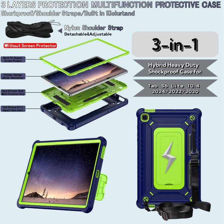 For Samsung Galaxy Tab S6 Lite 2020 / 2024 Armor Bolt Shape Holder Silicone Hybrid PC Tablet Case(Navy Blue Olivine)