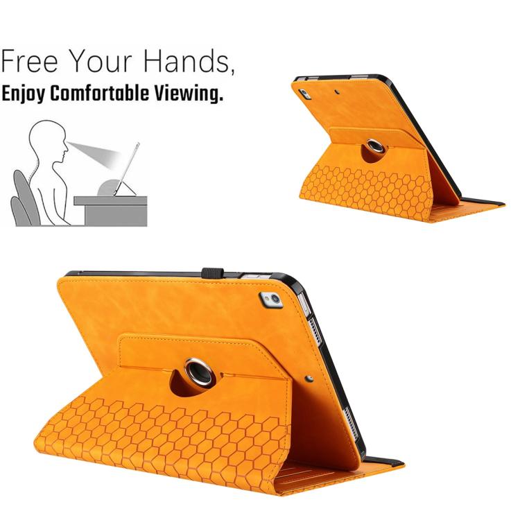 For Samsung Galaxy Tab S6 Lite 2020 P610 Rotatable Honeycomb Embossed Smart Leather Tablet Case(Yellow)