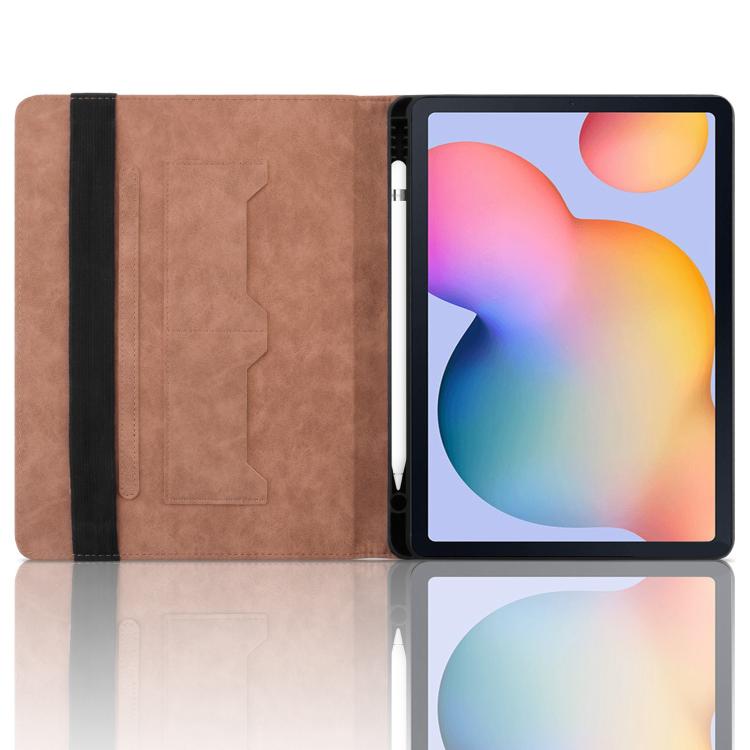For Samsung Galaxy Tab S6 Lite 2024 Rhombus Embossed Leather Smart Tablet Case(Brown)