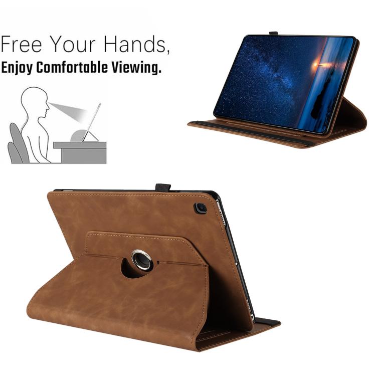 For Samsung Galaxy Tab S6 Lite 2024 Solid Color Rotation Holder Leather Smart Tablet Case(Brown)