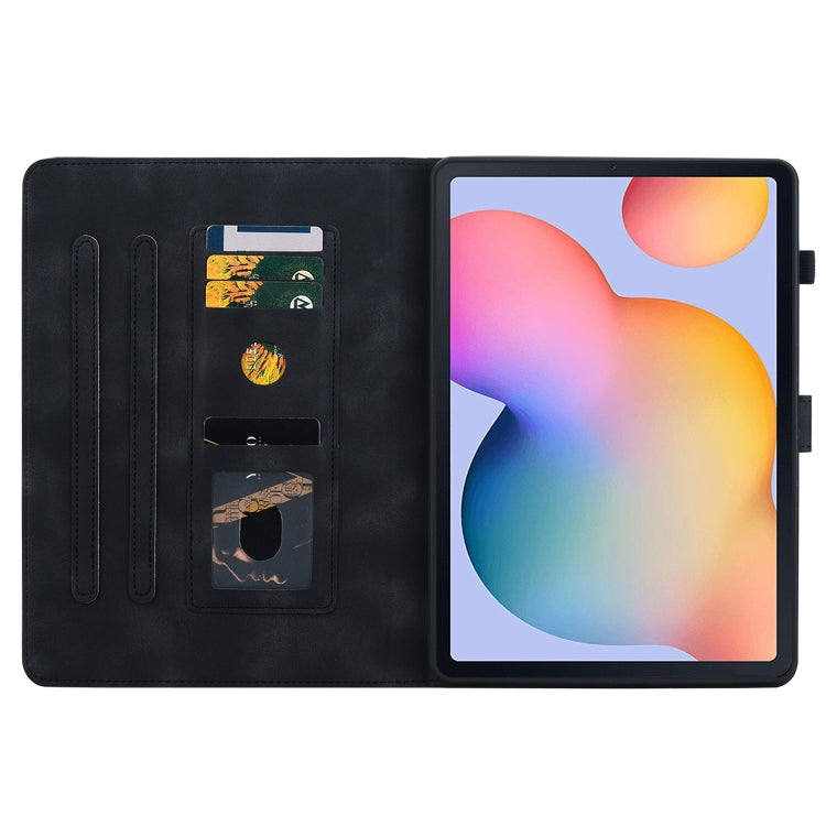 For Samsung Galaxy Tab S6 Lite Lily Embossed Leather Smart Tablet Case(Black)