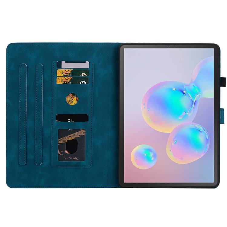 For Samsung Galaxy Tab S6 SM-T860 / SM-T865 Lily Embossed Leather Tablet Case with Pen(Dark Blue)
