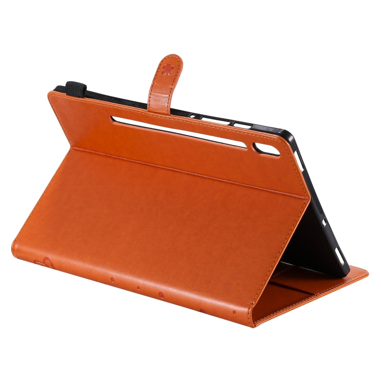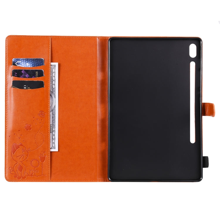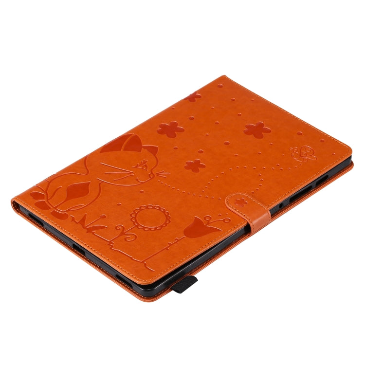 For Samsung Galaxy Tab S6 T860 Cat Bee Embossing Pattern Shockproof Table PC Protective Horizontal Flip Leather Case with Holder & Card Slots & Wallet & Pen Slot & Wake-up / Sleep Function(Orange)