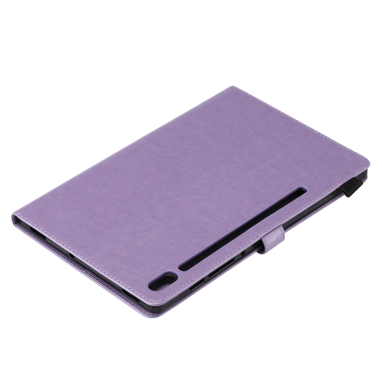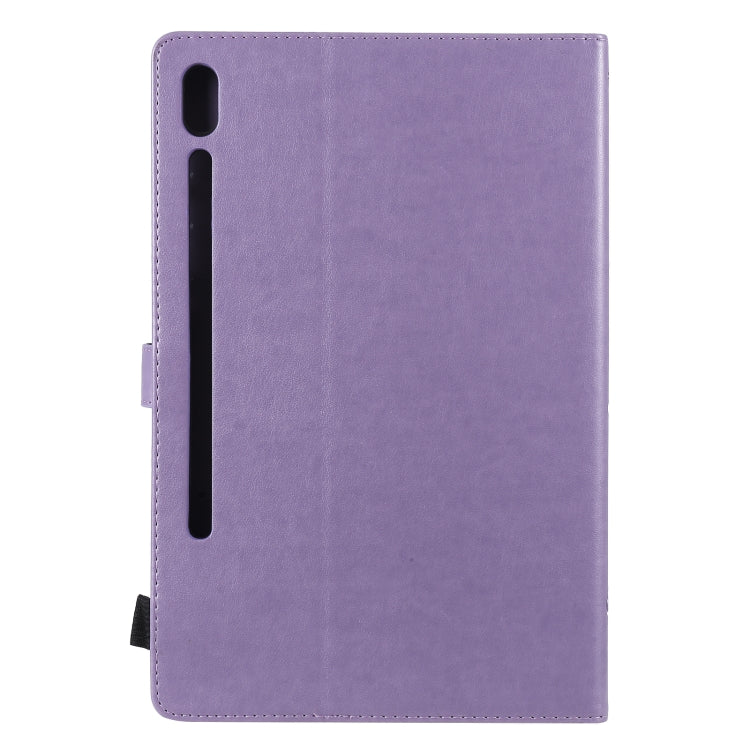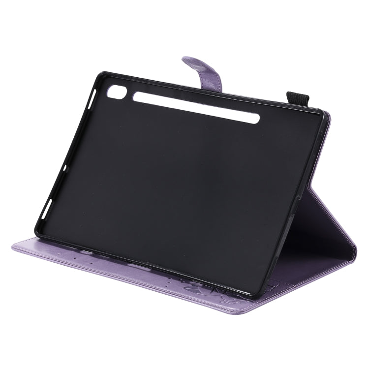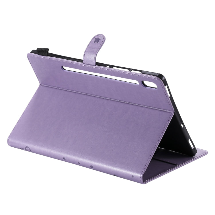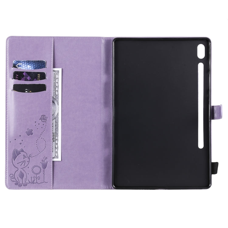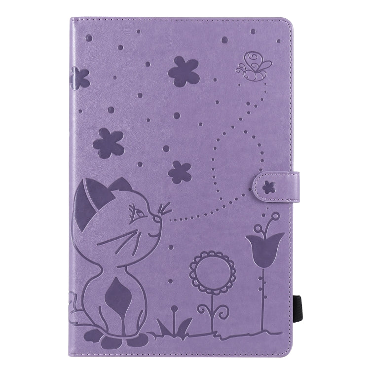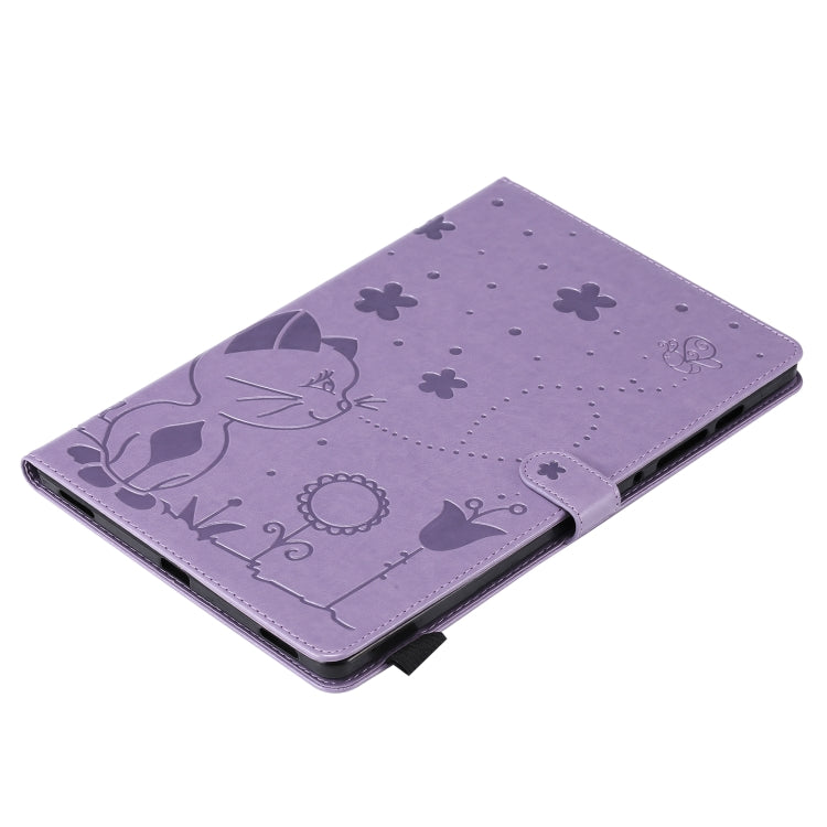 For Samsung Galaxy Tab S6 T860 Cat Bee Embossing Pattern Shockproof Table PC Protective Horizontal Flip Leather Case with Holder & Card Slots & Wallet & Pen Slot & Wake-up / Sleep Function(Purple)