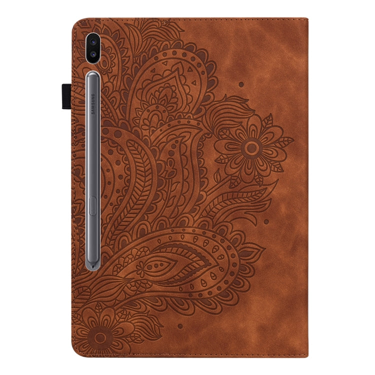 For Samsung Galaxy Tab S6 T860 Peacock Embossed Pattern Leather Tablet Case(Brown)