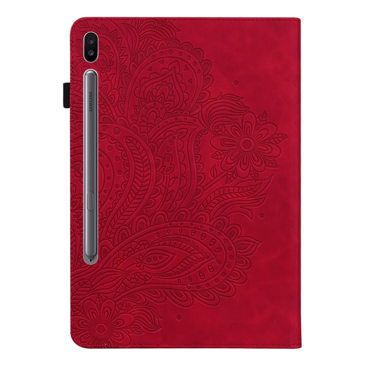 For Samsung Galaxy Tab S6 T860 Peacock Embossed Pattern Leather Tablet Case(Red)