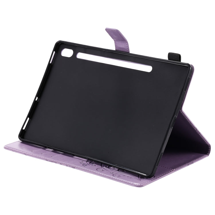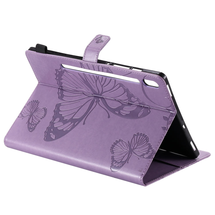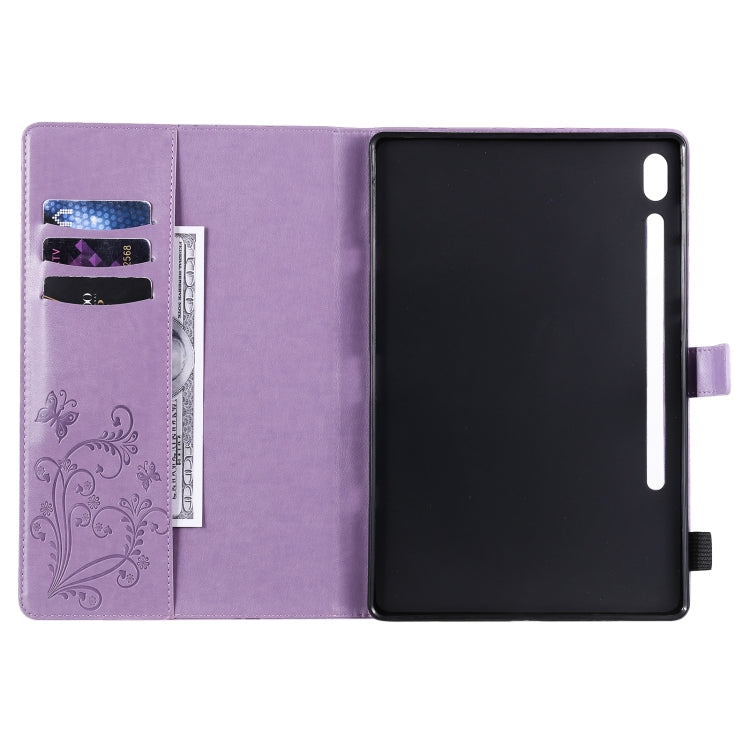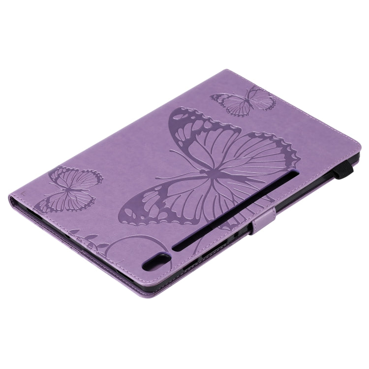 For Samsung Galaxy Tab S6 T860 Pressed Printing Butterfly Pattern Horizontal Flip Leather Case with Holder & Card Slots & Wallet & Sleep / Wake-up Function (Purple)