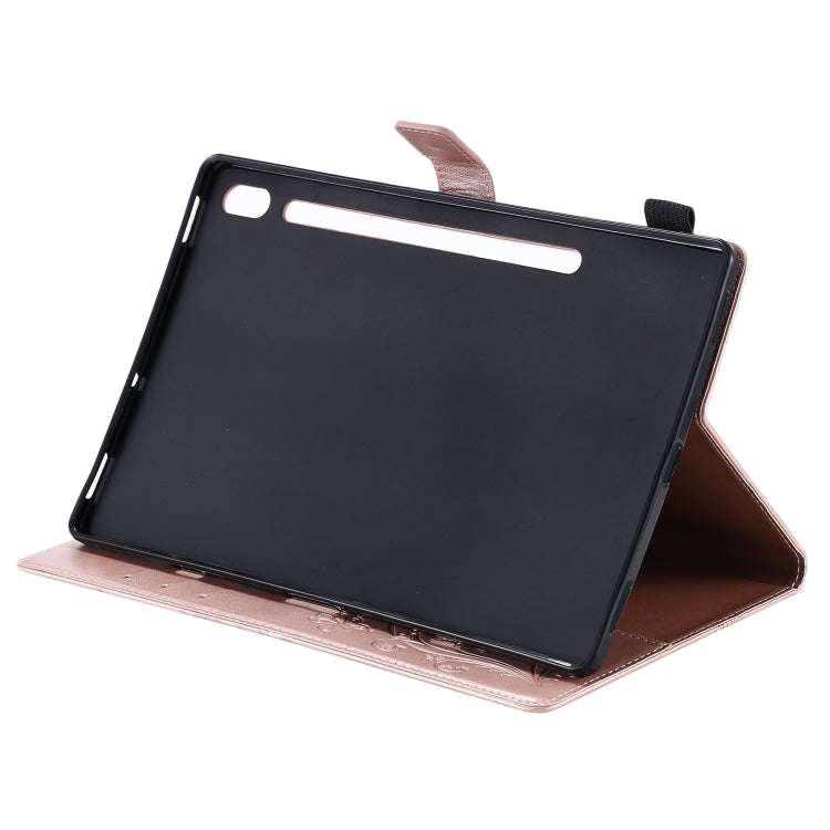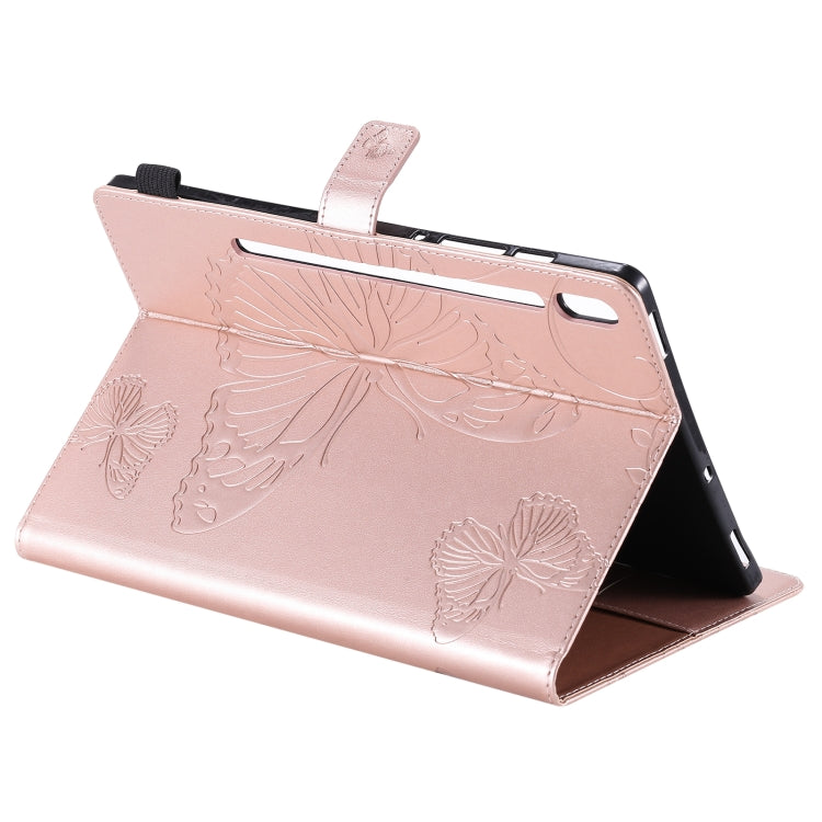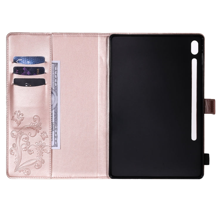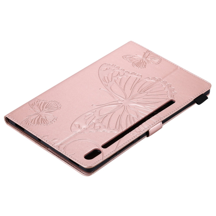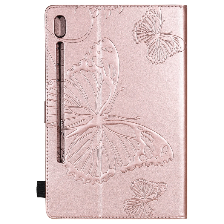 For Samsung Galaxy Tab S6 T860 Pressed Printing Butterfly Pattern Horizontal Flip Leather Case with Holder & Card Slots & Wallet & Sleep / Wake-up Function (Rose Gold)