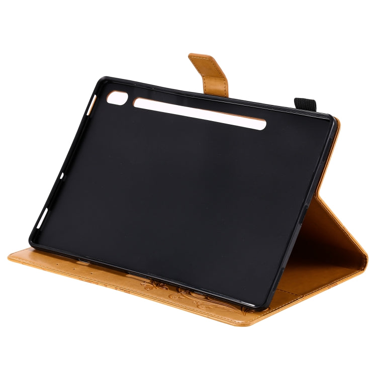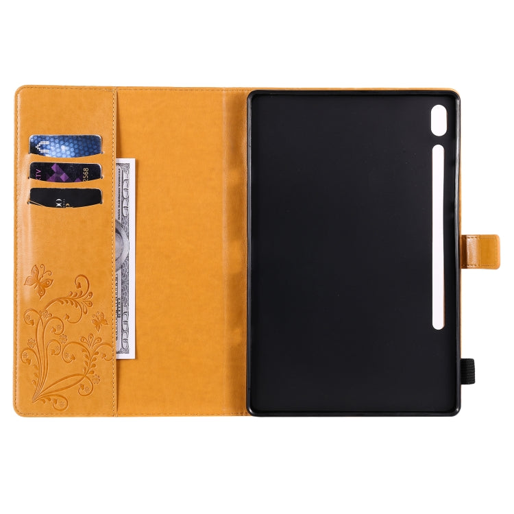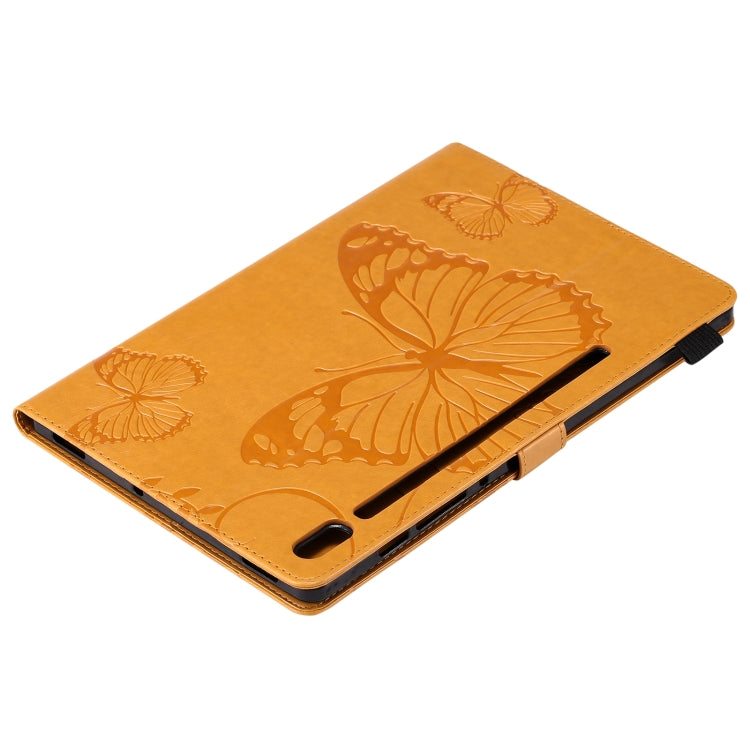 For Samsung Galaxy Tab S6 T860 Pressed Printing Butterfly Pattern Horizontal Flip Leather Case with Holder & Card Slots & Wallet & Sleep / Wake-up Function (Yellow)