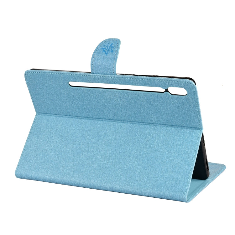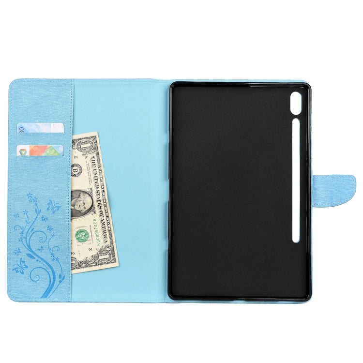 For Samsung Galaxy Tab S6 T860 / T865 Butterfly Flower Embossing Pattern Horizontal Flip Leather Case with Holder & Card Slots & Wallet(Blue)
