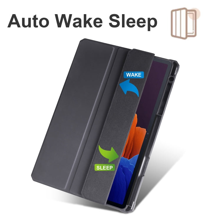 For Samsung Galaxy Tab S7 Acrylic 3-folding Smart Leather Tablet Case(Black)