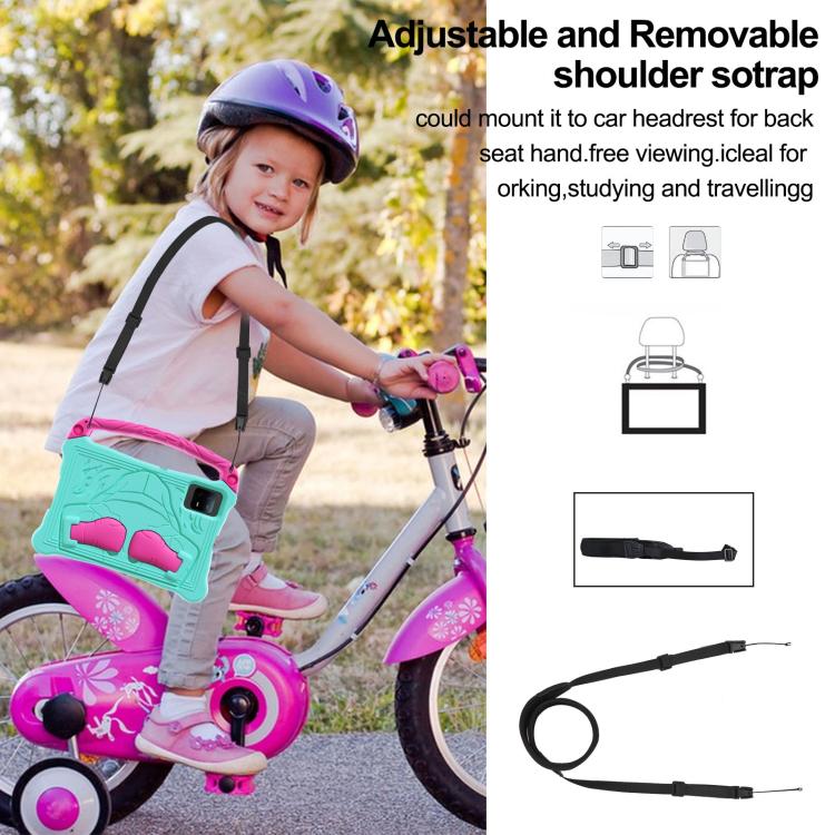 For Samsung Galaxy Tab S7 Boxing Series Kickstand EVA Shockproof Tablet Case with Shoulder Strap(Mint Rose Red)