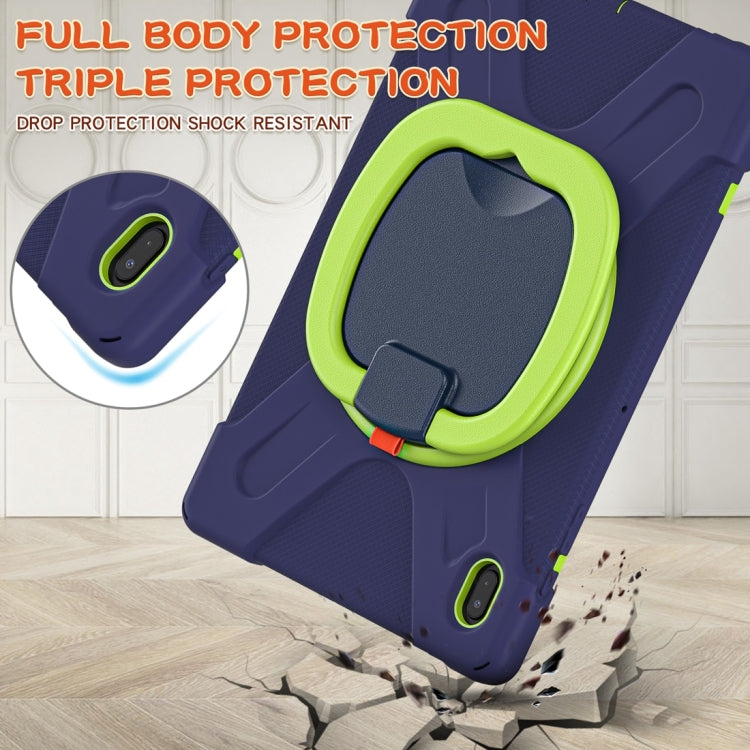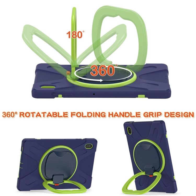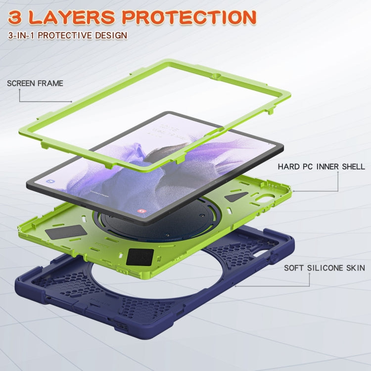 For Samsung Galaxy Tab S7 FE T730 Silicone + PC Protective Case with Holder & Shoulder Strap(Navy Blue + Lime)