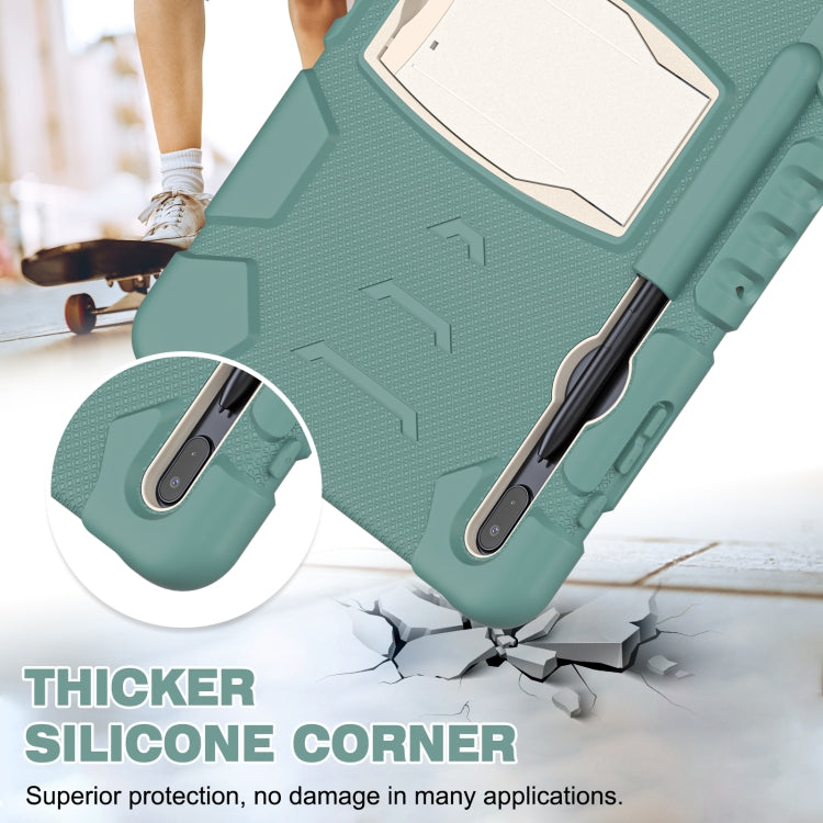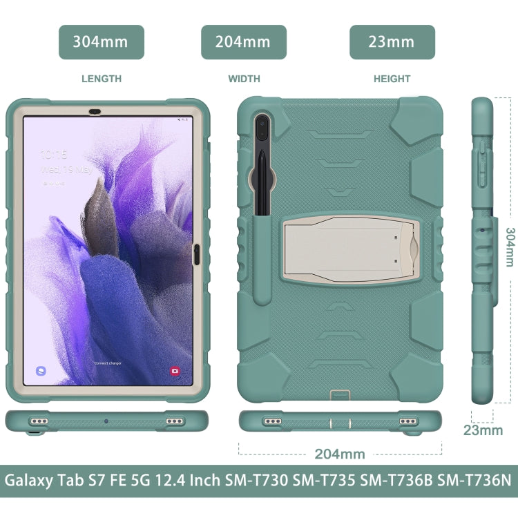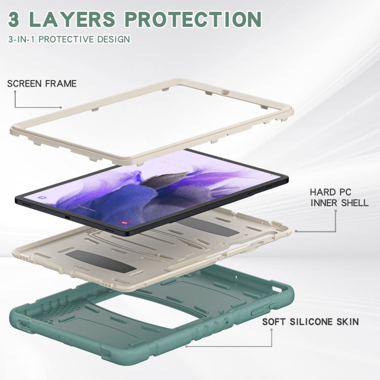 For Samsung Galaxy Tab S7+/ Tab S7 FE / Tab S8+ 3-Layer Protection Screen Frame + PC + Silicone Combination Case with Holder(Emerald Green)