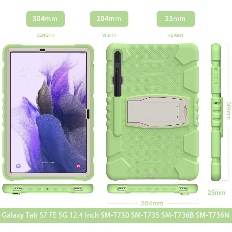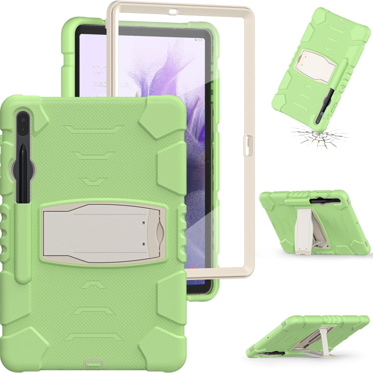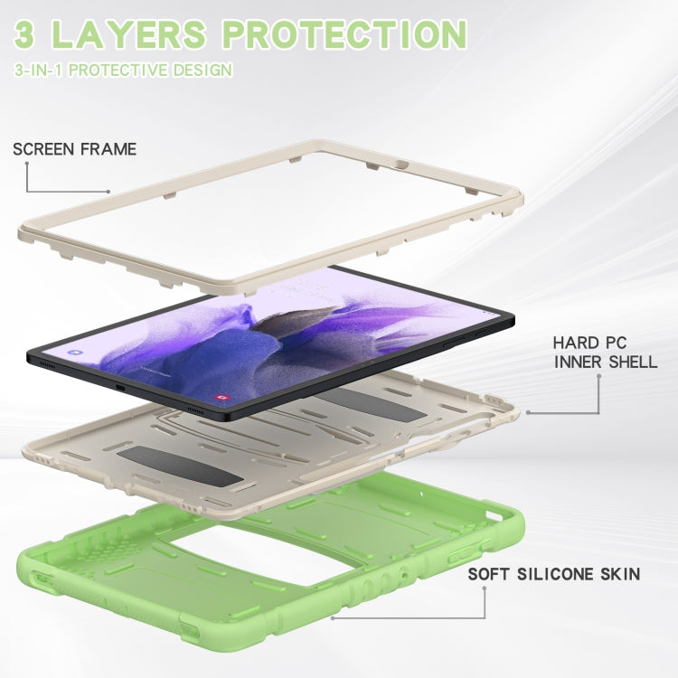 For Samsung Galaxy Tab S7+/ Tab S7 FE / Tab S8+ 3-Layer Protection Screen Frame + PC + Silicone Combination Case with Holder(Matcha Green)