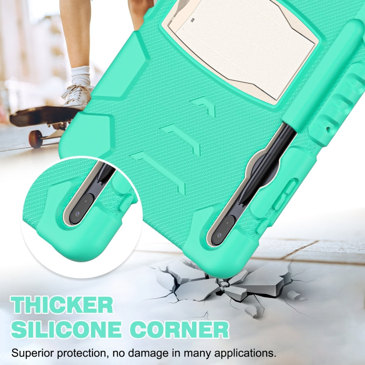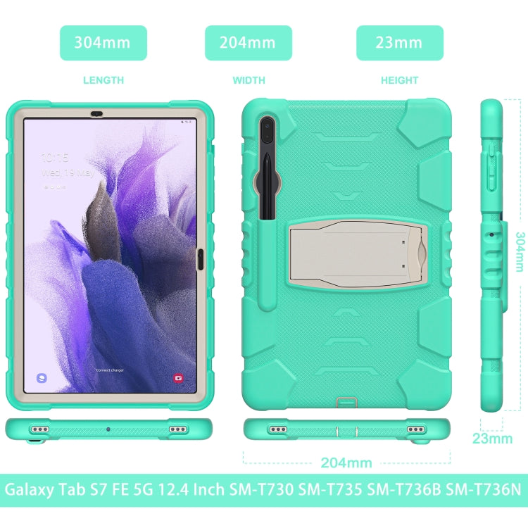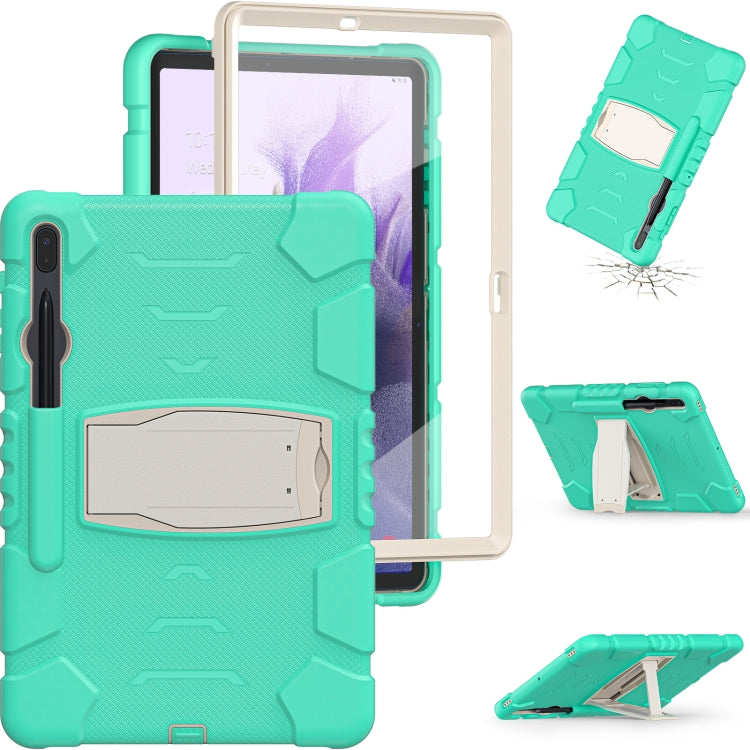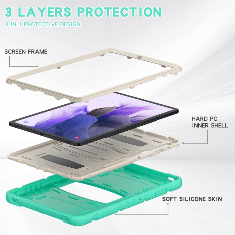 For Samsung Galaxy Tab S7+/ Tab S7 FE / Tab S8+ 3-Layer Protection Screen Frame + PC + Silicone Combination Case with Holder(Mint Green)
