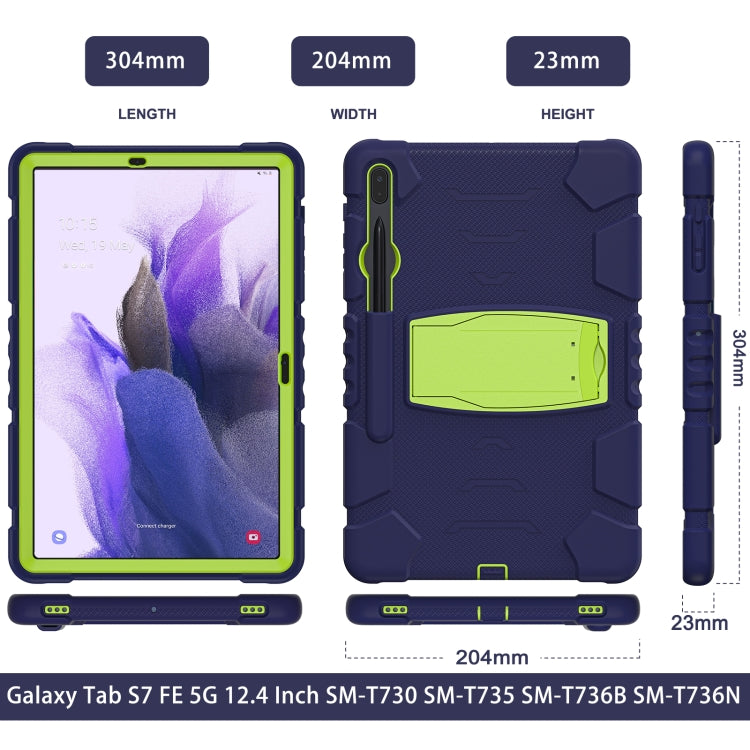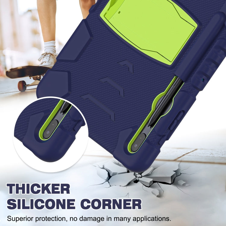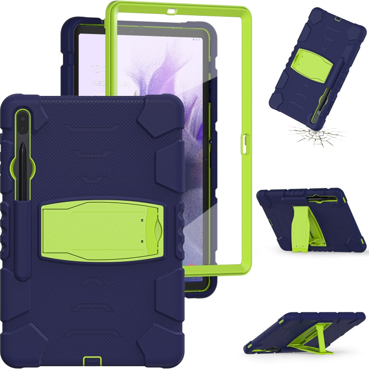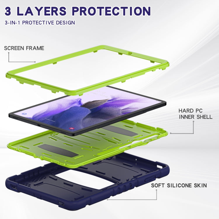 For Samsung Galaxy Tab S7+/ Tab S7 FE / Tab S8+ 3-Layer Protection Screen Frame + PC + Silicone Combination Case with Holder(NavyBlue+Lime)