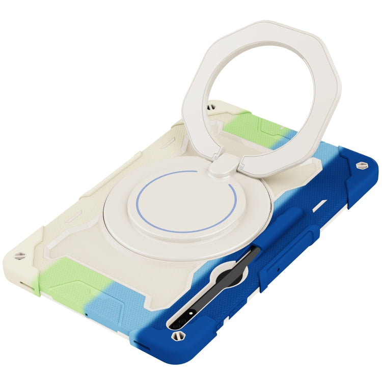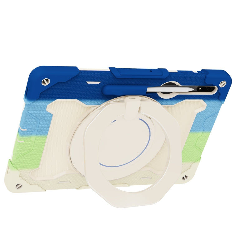 For Samsung Galaxy Tab S8 Ultra Armor Contrast Color Silicone + PC Tablet Case(Colorful Blue)