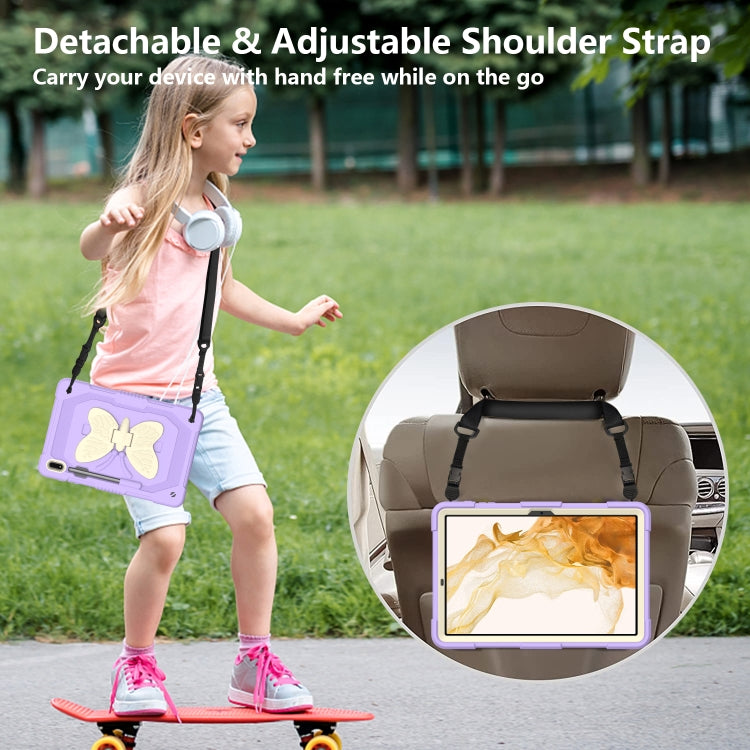 For Samsung Galaxy Tab S9+ Butterfly Kickstand Heavy Duty Hard Rugged Tablet Case(Beige+Raro Purple)