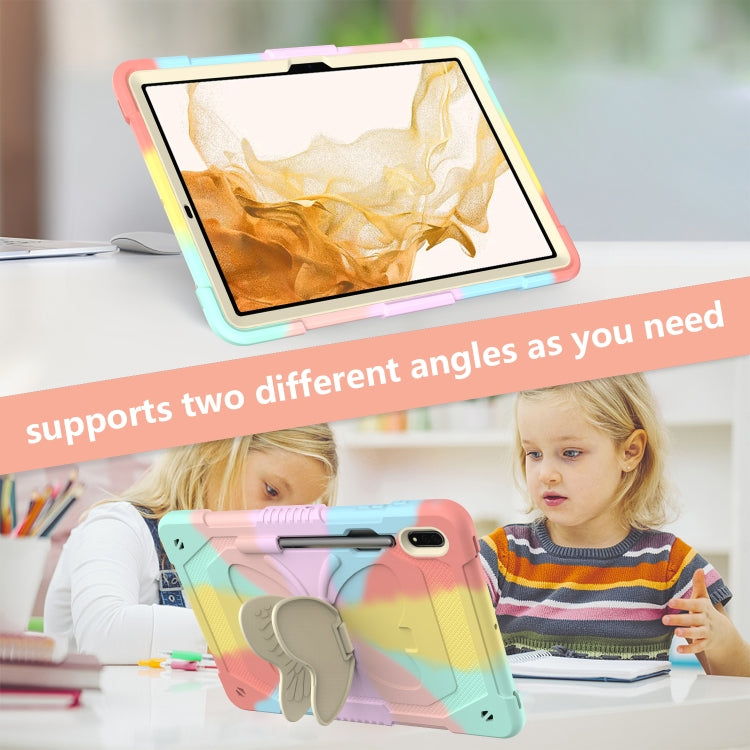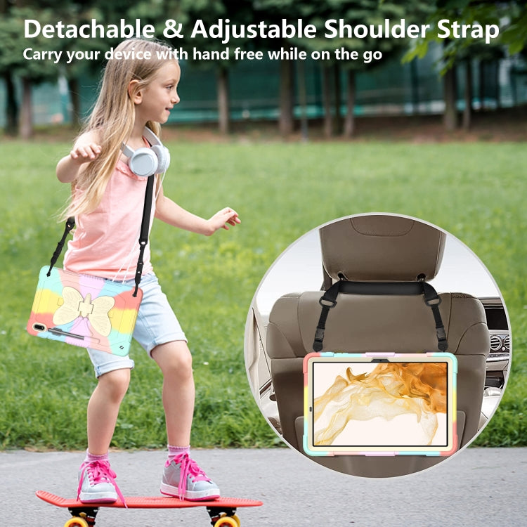 For Samsung Galaxy Tab S9+ Butterfly Kickstand Heavy Duty Hard Rugged Tablet Case(Colorful Rose Gold)