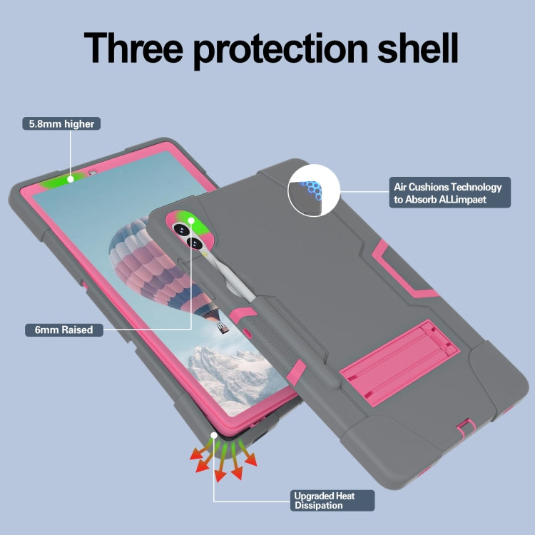For Samsung Galaxy Tab S9+ Contrast Color Silicone PC Tablet Case with Holder(Grey + Rose Red)