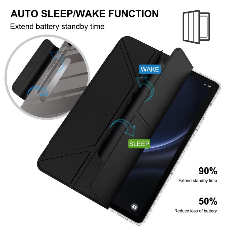 For Samsung Galaxy Tab S9/S10/S10 FE/S10 Lite Detachable Backshell Folding Holder Smart Tablet Leather Case(Black)
