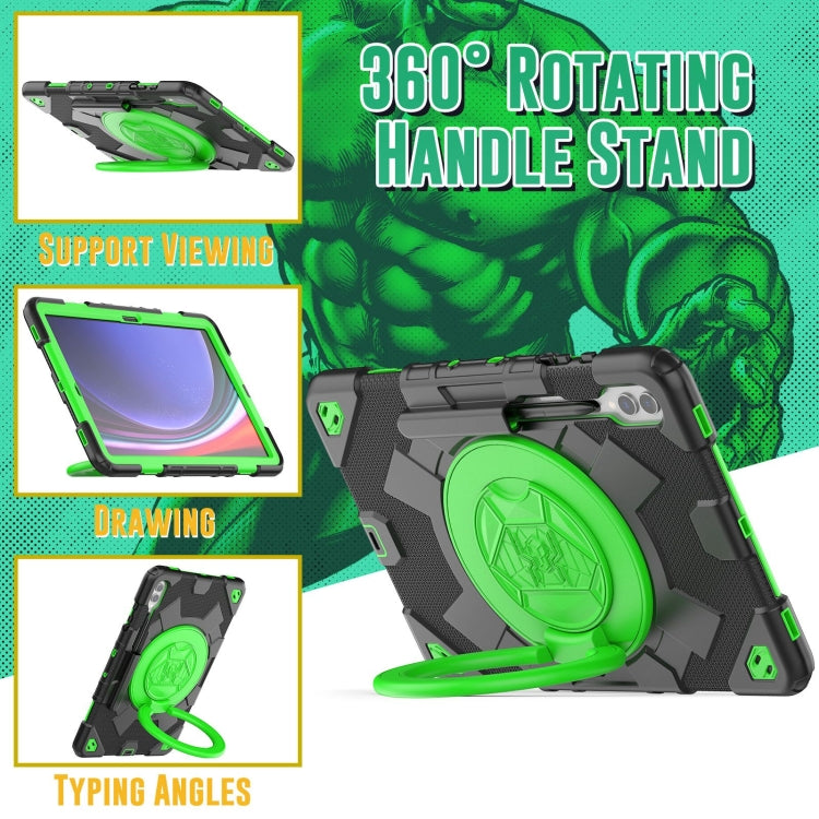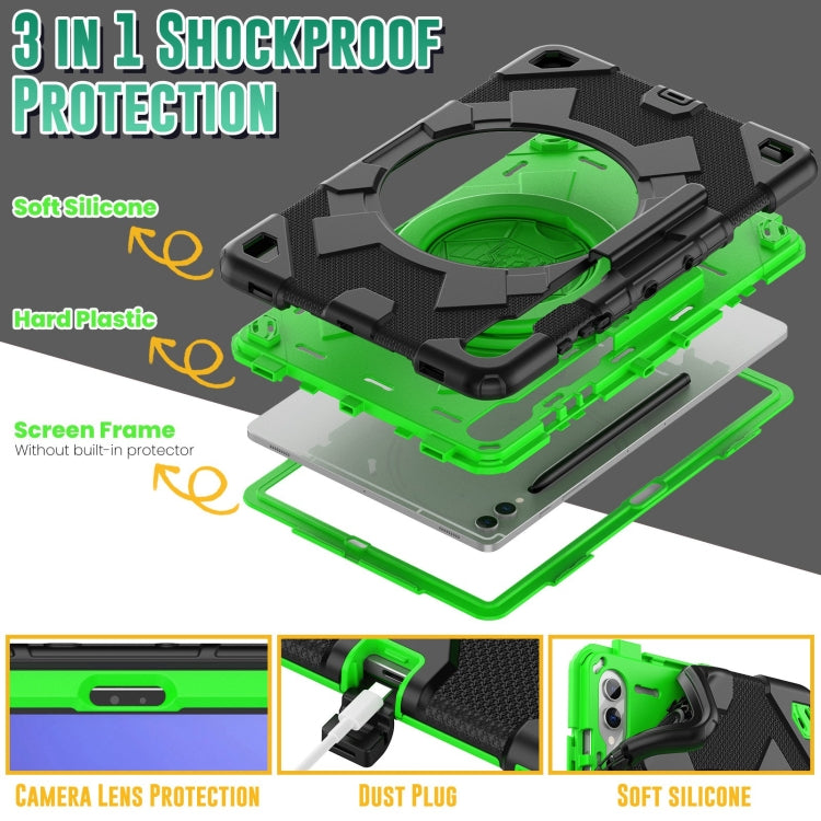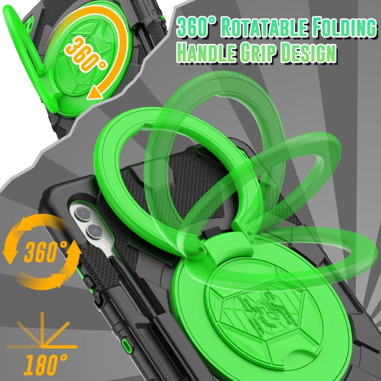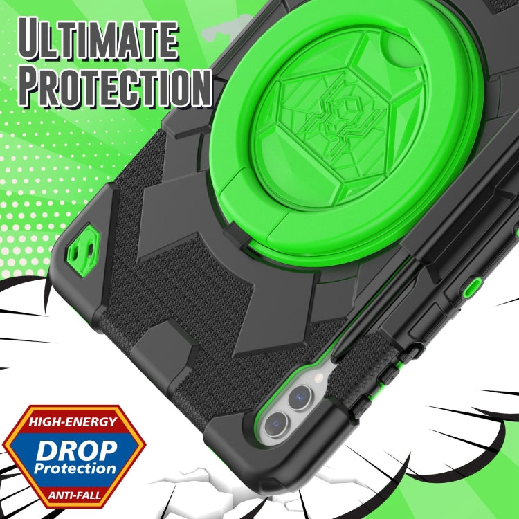 For Samsung Galaxy Tab S9+ / S10+ Spider Rotation Handle Silicone Hybrid PC Tablet Case(Black Green)