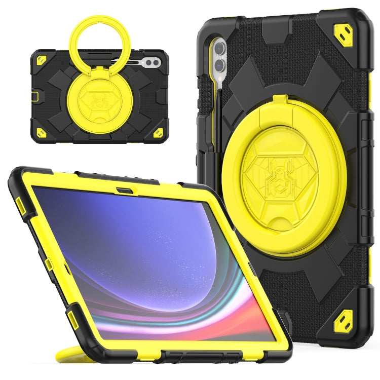 For Samsung Galaxy Tab S9+ / S10+ Spider Rotation Handle Silicone Hybrid PC Tablet Case(Black Yellow)