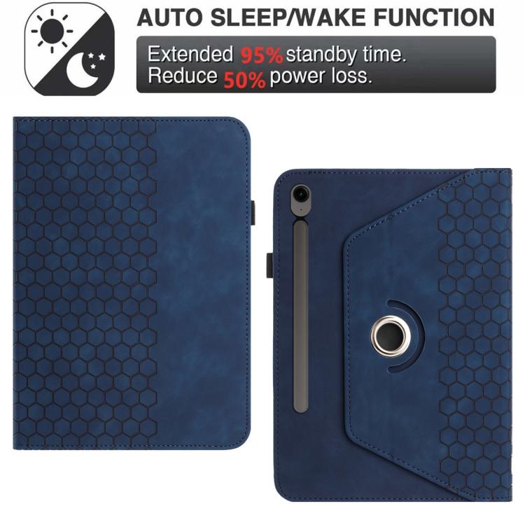 For Samsung Galaxy Tab S9 / Tab S9 FE Rotatable Honeycomb Embossed Smart Leather Tablet Case(Blue)